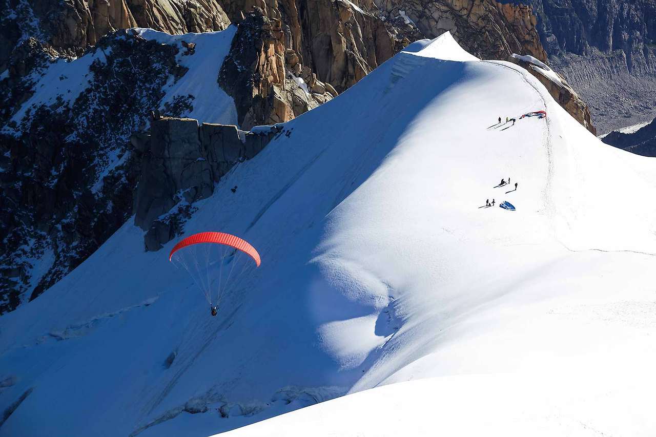“샤모니는 매일같이 새로운 액티비티와 먹거리를 경험할 수 있는 환상적인 곳입니다. 때로 죽으려고 환장한 것 같은 미친 사람도 있지만요.” 샤모니의 가이드 공세 크리스토프(Goncet Christophe)가 말한다. 그는 한때 일본에서도 일했던 스키와 스노보드 전문가이자 산악 가이드다. 프랑스 국가 대표팀을 위해 일하기도 했다. 잠시 부연 설명하자면, 샤모니의 가이드는 진짜 프로다. 수시로 재난 사고가 발생하는 알프스에서 가이드와 구조대의 존재는 때로 인간이 의지할 수 있는 유일한 밧줄이 되고는 한다. 에귀유 뒤 미디에서 내려오는 케이블카에서 크리스토프가 우연히 만난 한 가이드를 소개해주었는데, 그는 명함 대신 사진 엽서 1장을 건넸다. 앞면에는 스케이터의 사진이 뒷면에는 이력이 써 있는. 알고 보니 그는 프랑스 스피드 스케이팅 국가대표 출신이었다. 그만큼 쟁쟁한 사람들이 그 역할을 맡는 것이다. 샤모니에 자리한 프랑스 유일 국립 스키·등산 학교의 전 과정을 마치는 데는 4년이 걸린다. 세계에서 가장 오래된 가이드 협회(1821년 창설)에 정식 등록되는 건 그보다 더 어렵다고 한다. 그런 가이드 중 1명인 크리스토프가 말한 ‘미친 사람’은 샤모니기에 받아들여지는 익스트림 스포츠 마니아. 이를테면 윙슈트(wingsuit)를 입고 3,000미터 급 봉우리에서 뛰어내리거나, 계곡 사이 허공에 밧줄 하나만 걸고 줄타기를 실행하는 슬랙라이너(slackliner) 혹은 홀로 거대한 암벽을 오르는 솔로 프리 클라이머 등이다.