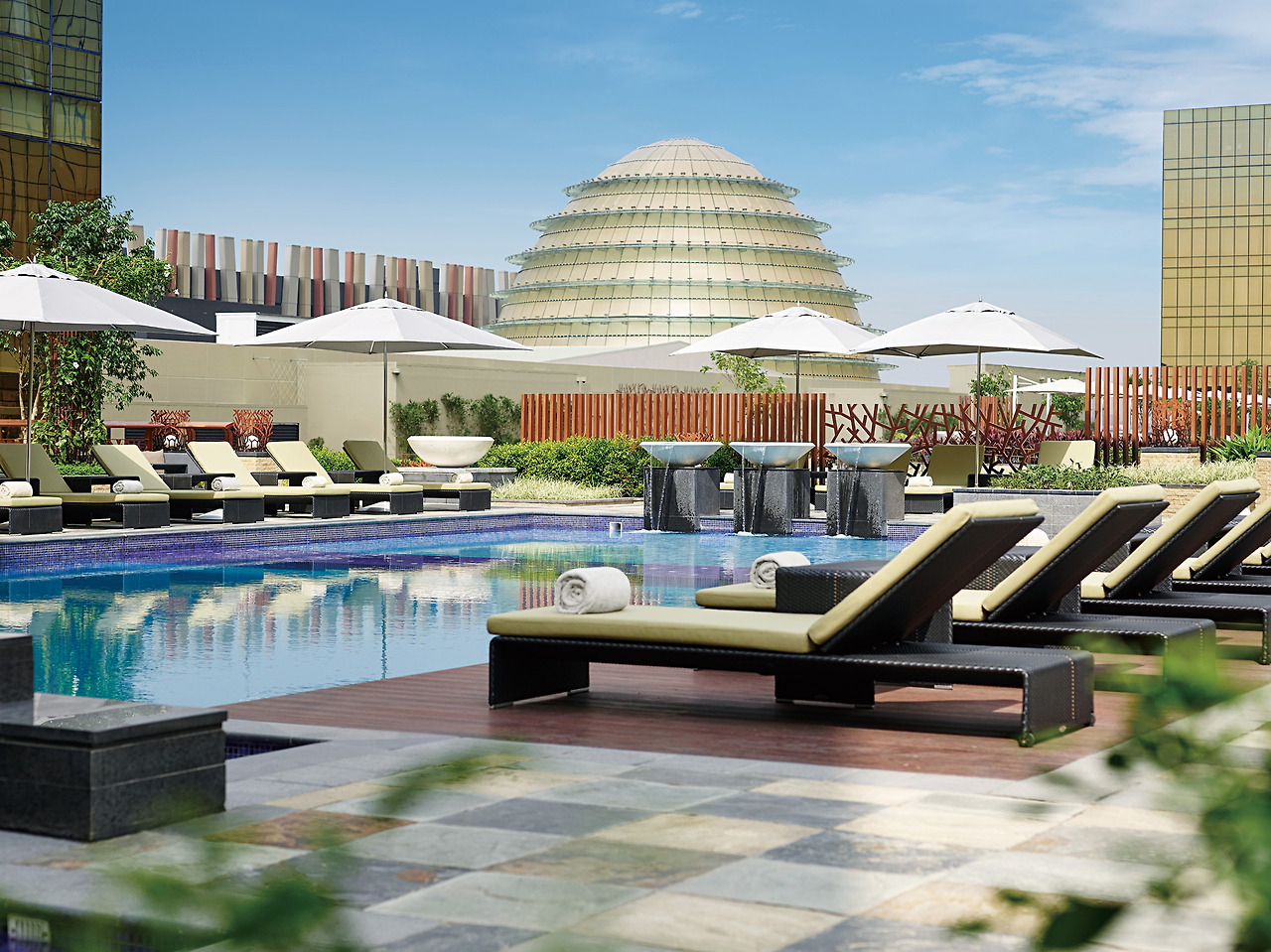 호텔 방안에서 서서 블라인드를 올리니, 골드 파사드에 둘러싸인 수영장에 휴양객이 점점이 떠 있다. 한적한 섬처럼 평화로운 황금빛 세계. 한껏 치장한 최고급 레스토랑에서 세계적 요리를 맛보고, 썬 베드에 누워 책을 읽고, 야외 칵테일 바에서 노을을 감상하면 이곳의 하루는 저물 것이다. 잠시 무더운 날씨 걱정은 잠시 접어둬도 좋겠다.