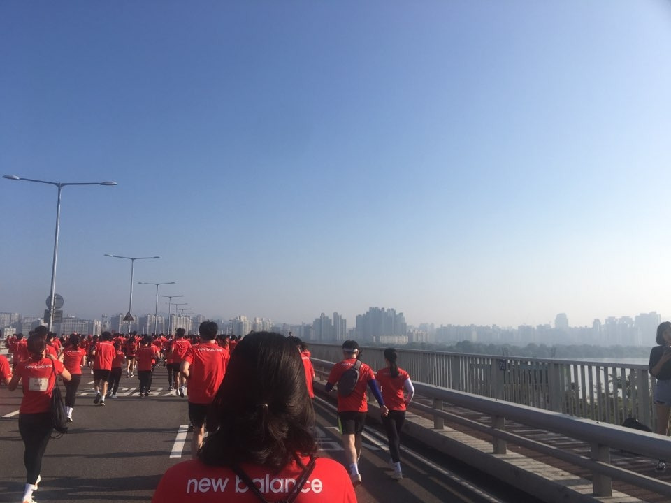 9월 29일 일요일, 한창 연애에 빠져 각성상태일 때 신청한 뉴발란스 마라톤 날이 드디어 밝았다. 여름 내내 퇴근 후 10km씩 꾸준히 연습을 하며 적당히 맞는 페이스를 찾았으니 달리는 일이 크게 불안하진 않았다. 10km 정도는 빠르진 않아도, 가뿐하게 들어올 수 있을 것이라고 생각하면서 여의도로 향했다.