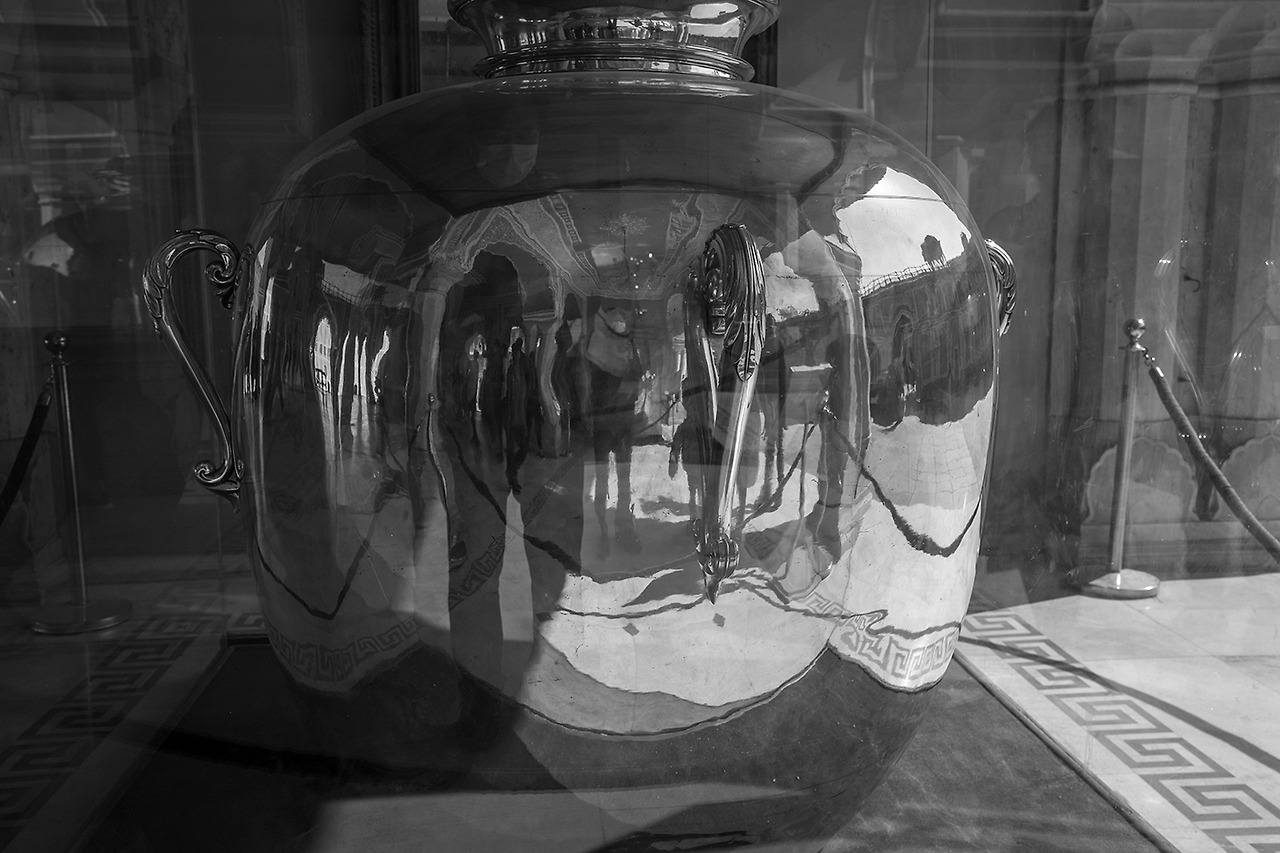 마하라자는 왕족으로서 누릴 수 있는 모든 것을 가졌지만, 힌두교의 신념을 지키기 위해서는 지구 반대편까지 성스러운 물을 가지고 가야 했다. 은 항아리는 왕실의 부와 권력을 상징하는 동시에, 그들의 일상과 종교적 믿음이 얼마나 분리될 수 없는 것이었는지 웅변한다.