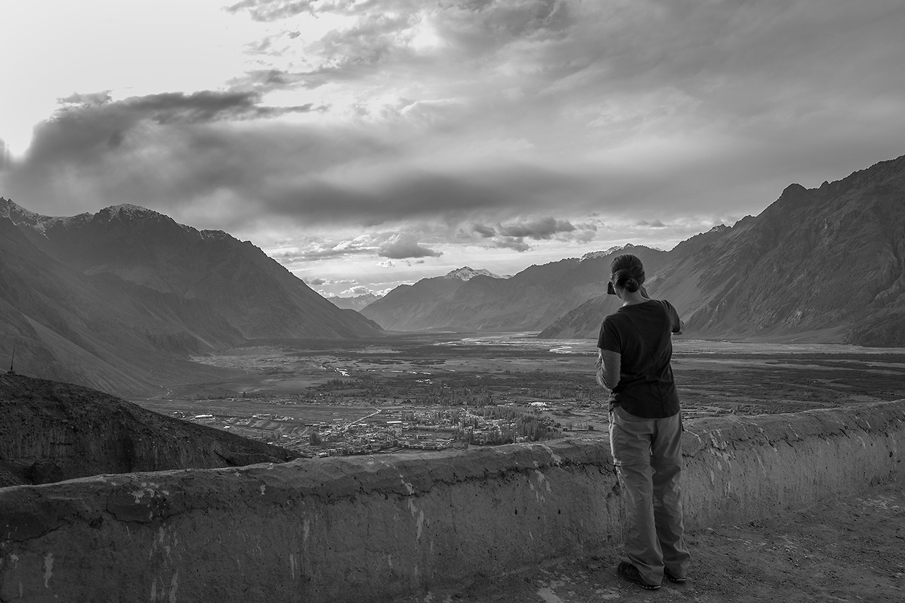 황량한 산맥과 아래로 흐르는 시오크 강, 사막 같은 누브라 밸리의 독특한 풍경이 한눈에 들어왔다. 드넓은 대지 앞에서 나는 나의 존재를 잠시 잊었다. 인간 세상의 모든 번잡함과 고단함은 이 광활한 풍경 앞에 부질없었다. 비록 짜이를 마시며 여유를 즐기지는 못했지만, 이 장엄한 풍경은 나에게 넓은 세계관을 선물했고, 나의 고민과 시야를 단숨에 확장시켜 주었다.