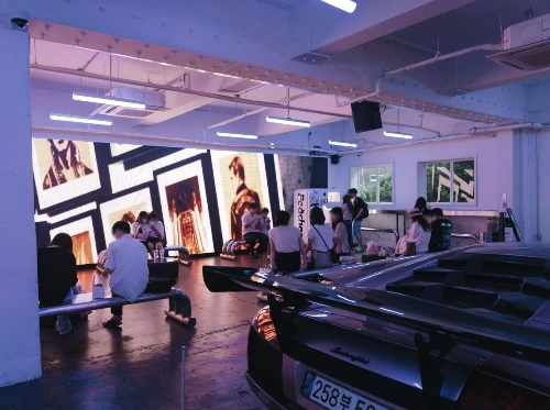 특이한 건 공간 곳곳에 튜닝 스포츠카가 놓여있다는 거예요. 마음껏 구경하고 만지고 타볼 수 있어요! 자동차도 ‘자연스런 일상’에 함께할 수 있다는 걸 보여주죠.