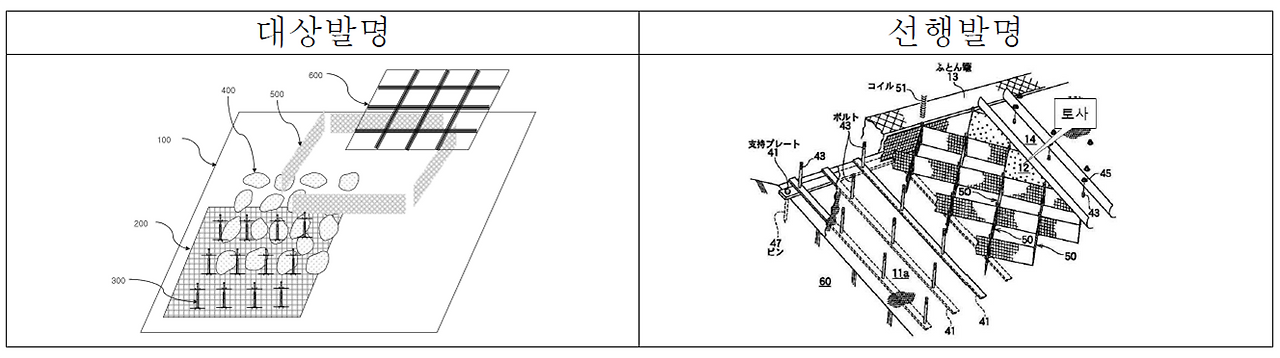 이 사건은 “시공석 고정구조물”에 관한 발명에 관한 것으로, 대상발명은 절개지 등 사면을 보호하기 위한 구조물 안에 시공석이 들어가는 것인 반면, 선행발명은 구조물 안에 들어가는 내용물이 토사라는 점에서 차이가 있는 것을 제외하고 나머지 구성은 모두 동일한 사안이다. 법원은 절개지 등 사면을 보호하기 위한 구조물 안에 시공석이 들어가는 것은 주지관용기술이므로, 대상발명은 통상의 기술자가 선행발명에 주지관용기술을 적용하여 쉽게 발명할 수 있다고 판단하였다.