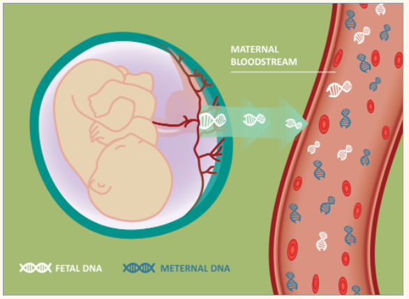 최근에는 임산부의 혈액을 채취하여 혈액 내의 cffDNA(cell-free fetal DNA)를 검사함으로써 태아의 염색체 이상이나 성별 등을 진단하는 획기적인 방법이 등장하였다. 이와 같은 진단방법은 비침습적으로 태아의 DNA를 검사(non-invasive prenatal DNA testing)하게 되므로 유산의 위험이 없다는 이점이 있다.