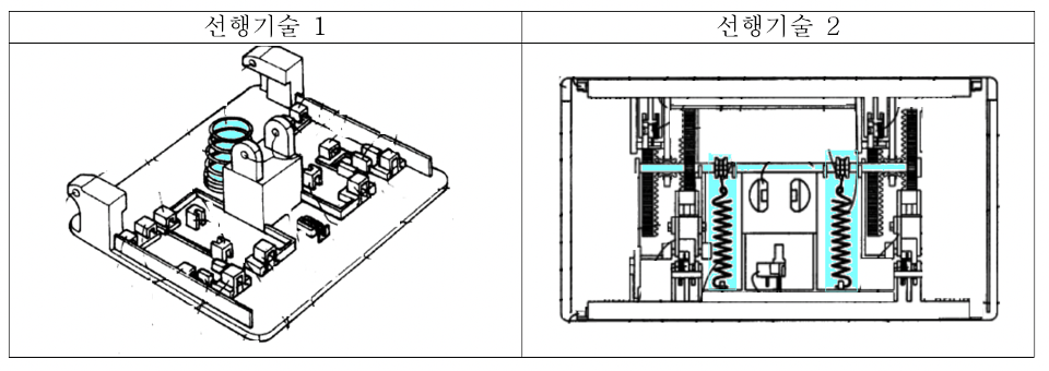 발명가 A가 위와 같은 방법으로 선행기술을 검색한 결과 한 번의 터치로 뚜껑이 개폐되면서 걸레를 탈착하는 물걸레 청소기에 관한 2건의 발명이 검색되었다. 선행기술 1은 중앙에 수직으로 형성된 스프링의 탄성력에 의해 뚜껑을 개폐하는 물걸레 청소기이고, 선행기술 2는 수평으로 형성된 스프링의 탄성력에 의해 뚜껑을 개폐하는 물걸레 청소기이다.