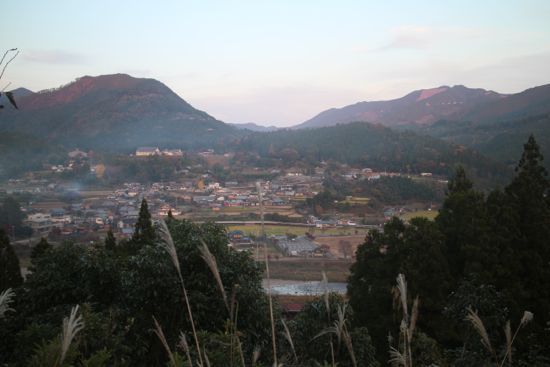 치카츠유 마을로 내려가는 길. 해가 산 너머로 도망치듯 사라져 버렸다. 숲길을 다 내려 도로를 건너니 마을이다. 산이 둘러싸고 있는 고요한 마을이다.