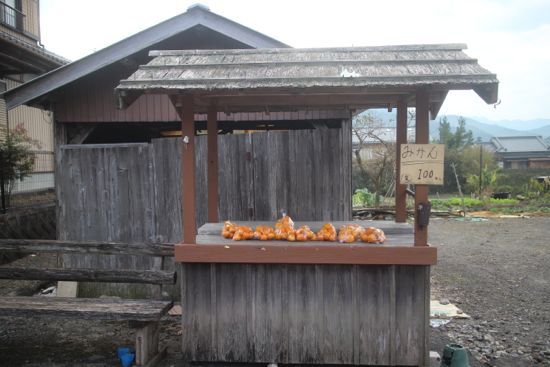 100엔을 넣고 귤 한 봉지를 집어 들었다. 이렇게, 디저트까지 완벽히 준비됐다.