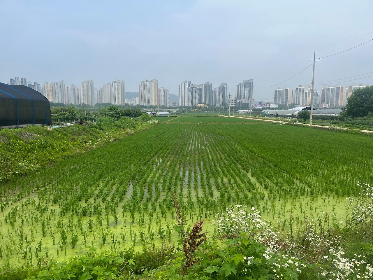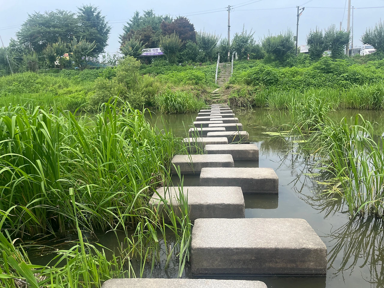 - 그다음 날, 잠깐 짬을 내어 그 길을 걸었다. 징검다리도 건너고, 하천도 보고, 하얗고 우아한 백로가 목에 물고기 한 마리를 담아 날아가는 것도 보고, 밭 한가운데 농막에서 파라솔 아래 쉬고 있는 노인분들도 봤다. 돌아오는 길에 햄버거와 빵을 샀다. 천 원짜리 생크림 빵이 의외로 맛있었다.