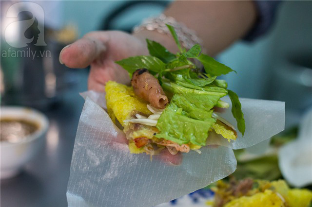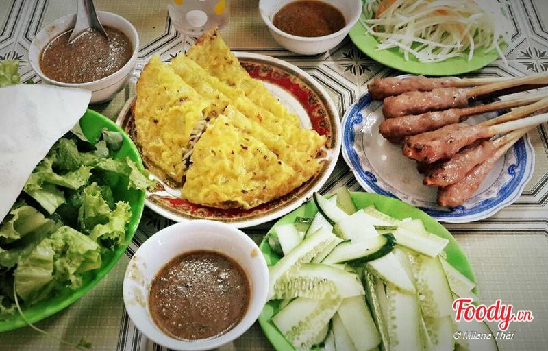반 쎄오에서 '반(Bánh)'은 쌀가루나 밀가루 같은 것으로 만들어진 음식을 일컫는 것이고, 쎄오(xèo)는 기름에 지글지글 끓는 소리를 딴 것이라고 한다. 말하자면 지글지글하는 팬케익 같은 건데, 한 입 베어 물면 이 음식의 이름에 대해서 고개를 끄덕일 수밖에 없을 것이다.