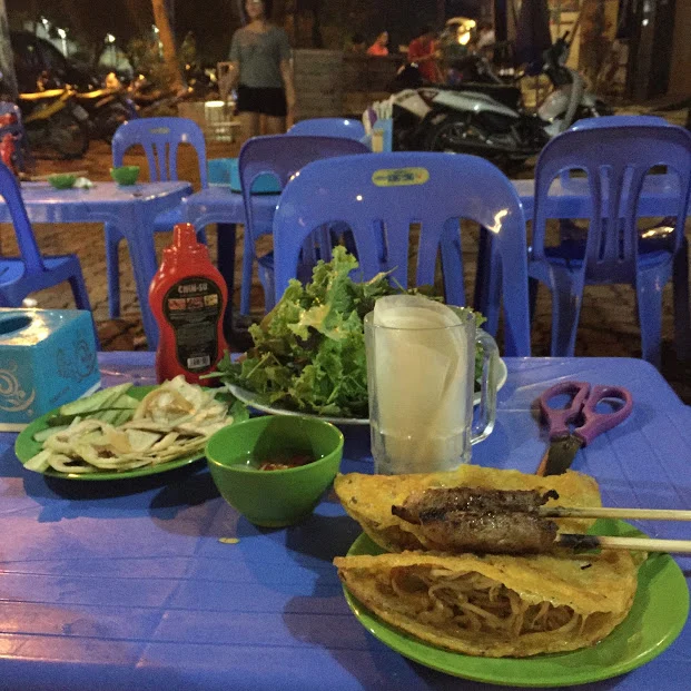 그러나 혼자도 먹을 수 있다. 용기만 있으면 된다. 아귀찜 같은 건 양도 많고 가격도 비싸서 용기만 있다고 되는 게 아니지만 반쎄오 넴루이는 양도 혼자 먹을 수 있을 만큼 시킬 수 있고 가격도 저렴해서 충분히 혼자 먹을 수 있다. 나처럼 혼자 앉아 식사를 하면서도 쓸쓸해하지 않을 용기만 있으면 된다. 베트남에서는 1인 식사에 꽤나 관대한 편이다. 음식점이 바쁘다면 겸상을 해야 할 수 있기는 하지만 현지인들과 나란히 앉아 식사를 하는 것도 재미니까 나 홀로 여행자들에게도 주저 않고 도전하기를 추천한다. 그만한 가치가 있는 음식이다.