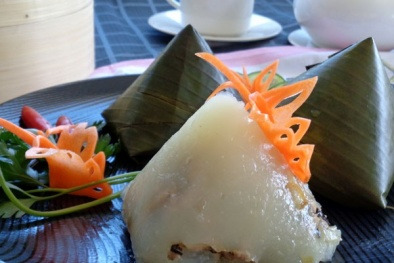 반죽 속에 고기 속을 대강 넣고 바나나 잎으로 위와 같은 모양을 잡는다. 이렇게 3-40분 정도 쪄내면 바나나 잎의 향이 배어든 바잉서를 만들어낼 수 있다고 한다. 사실 난 바나나 잎의 향이라는 것이 무엇인지 잘 모르겠다.
