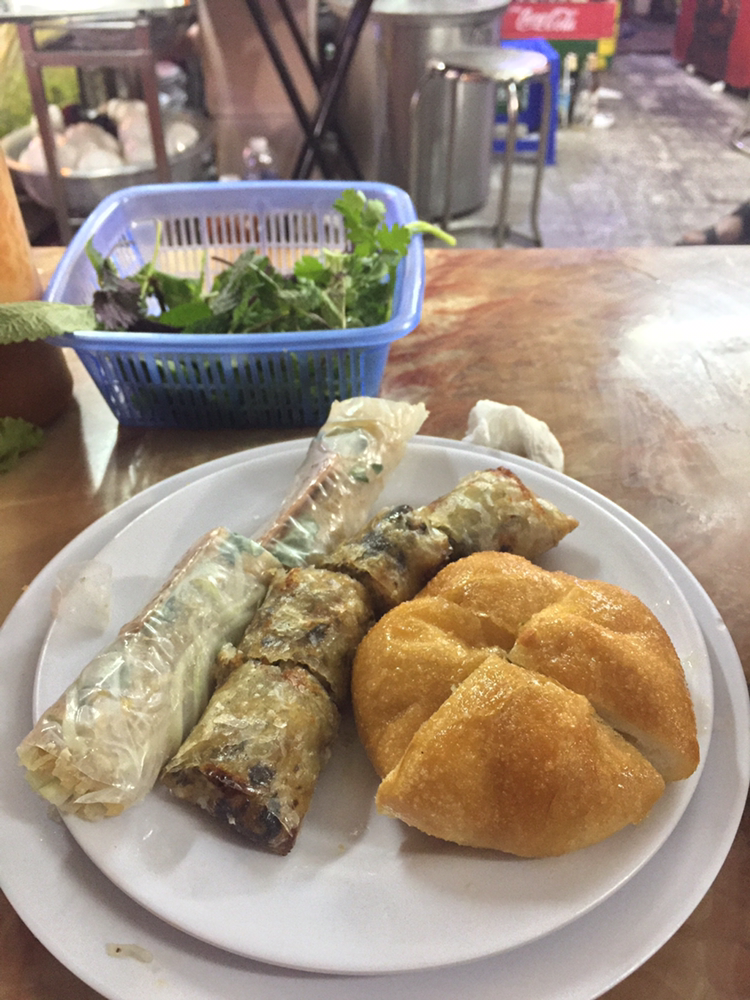 +호안끼엠 쪽 세인트 조셉 성당을 등지고 왼쪽으로 좀 가다 보면(바로 옆 골목 말고) 오래된 분식집 같은 튀김 집이 있다. 찹쌀도넛 같은 바잉 산 응옷(bánh rán ngọt) 이 맛있다.