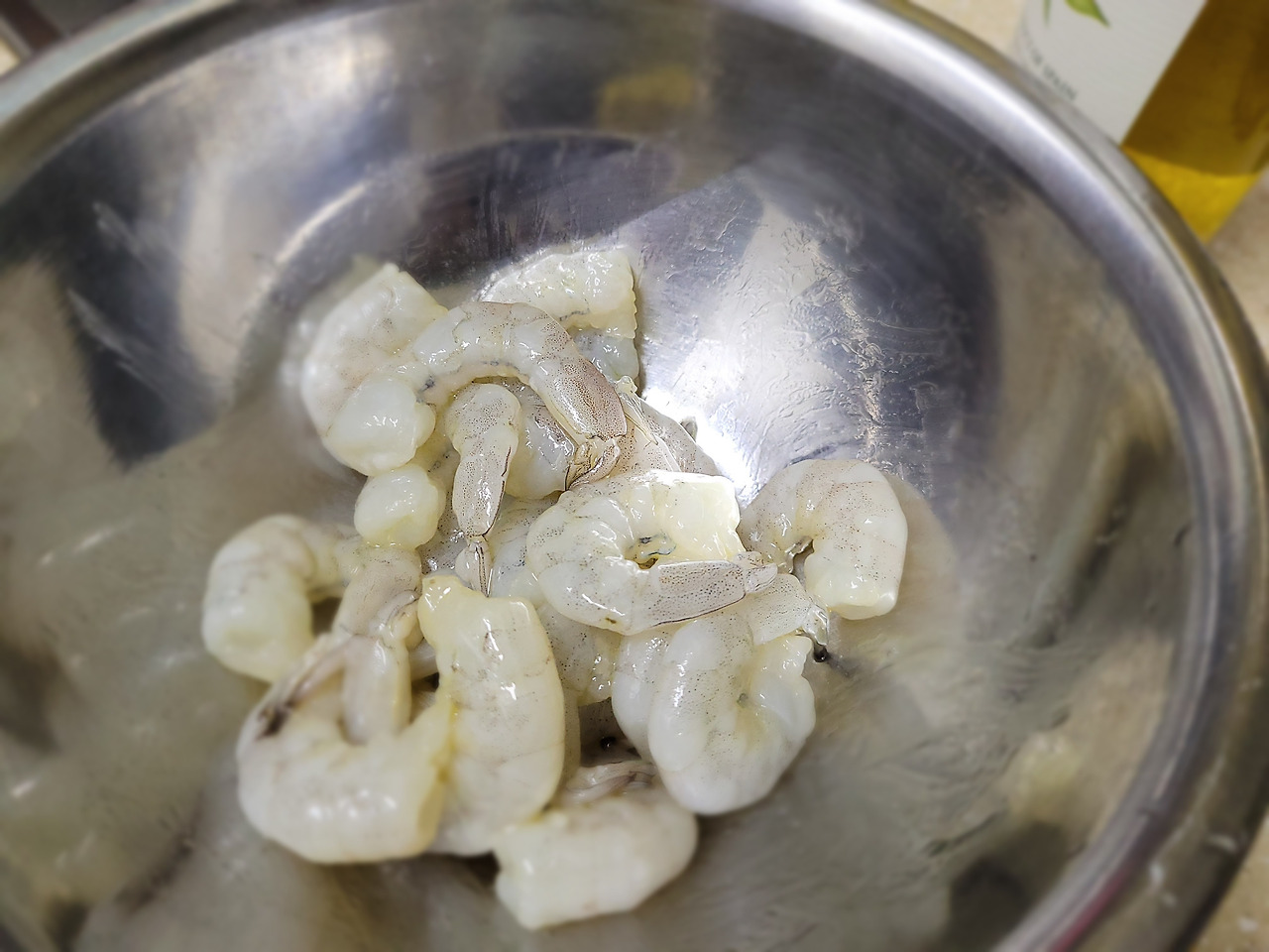 4. 역시나 기름이 튀지 않도록 새우를 올리브오일로 코팅해줍니다.