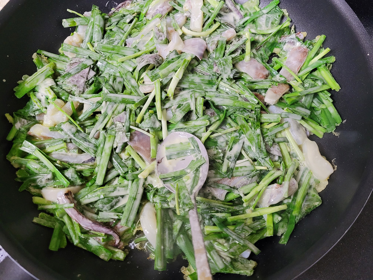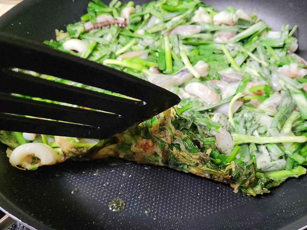 오징어 손질 끝에 낙이 오는 바삭바삭 오징어 부추전