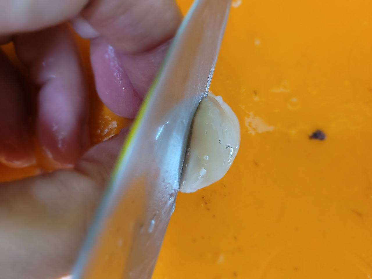 8. 이어서 오징어 눈알 2개를 똑 떼줍니다.