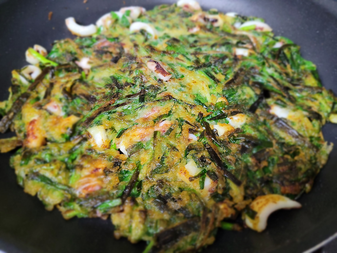 23. 부침이 얇아서 더욱 바삭한 오징어 부추전 완성 ♬