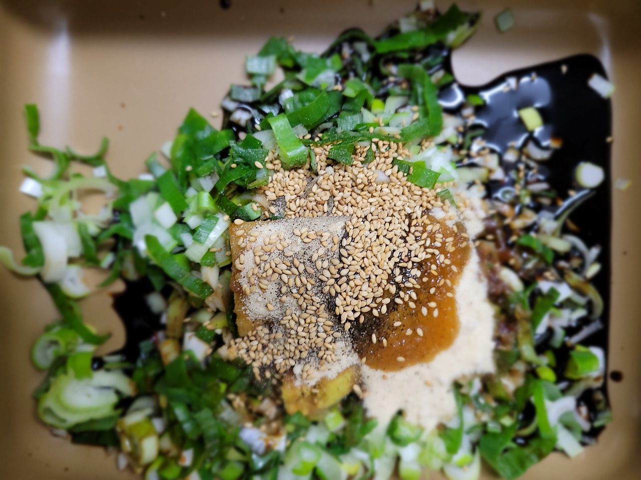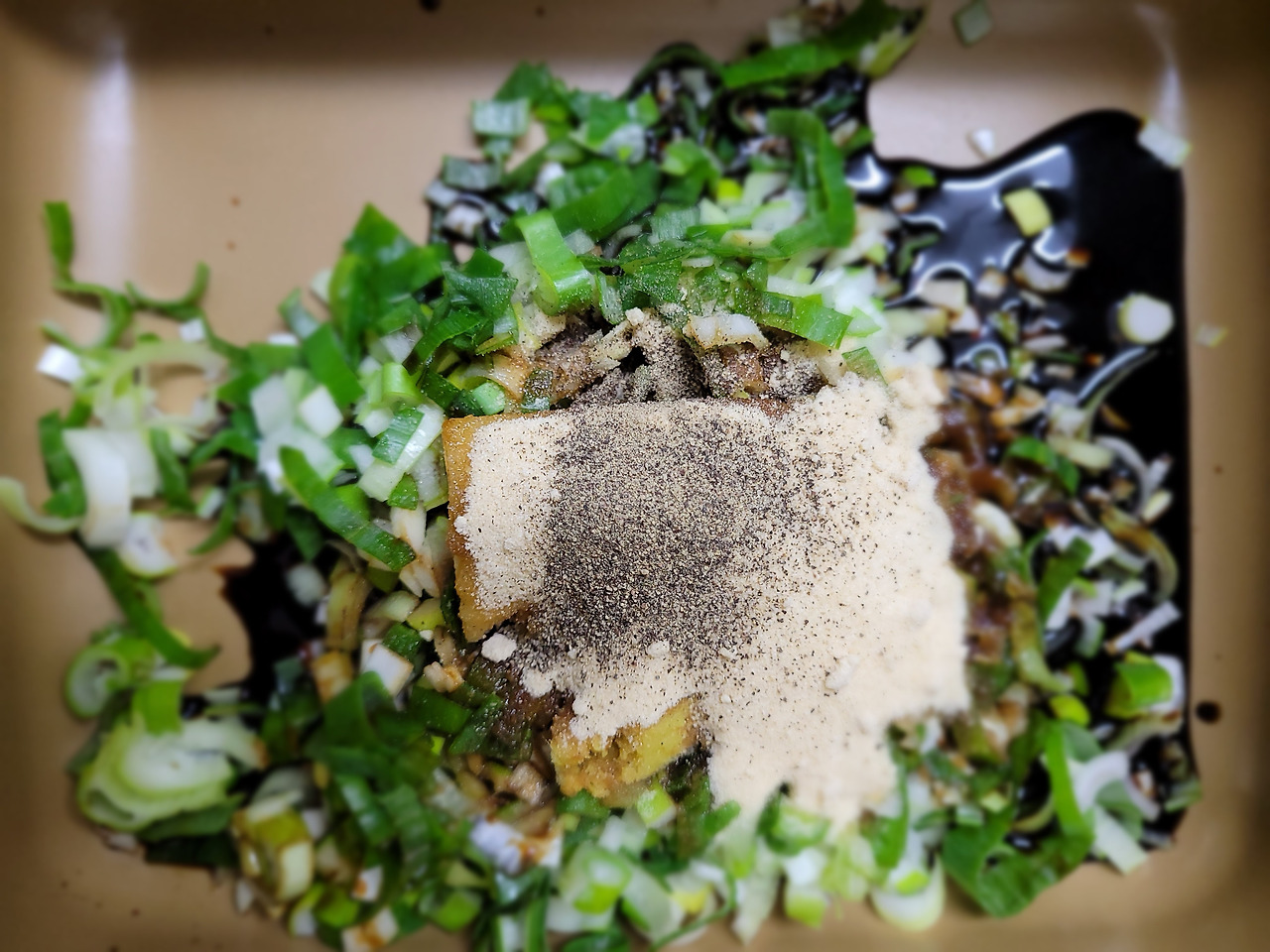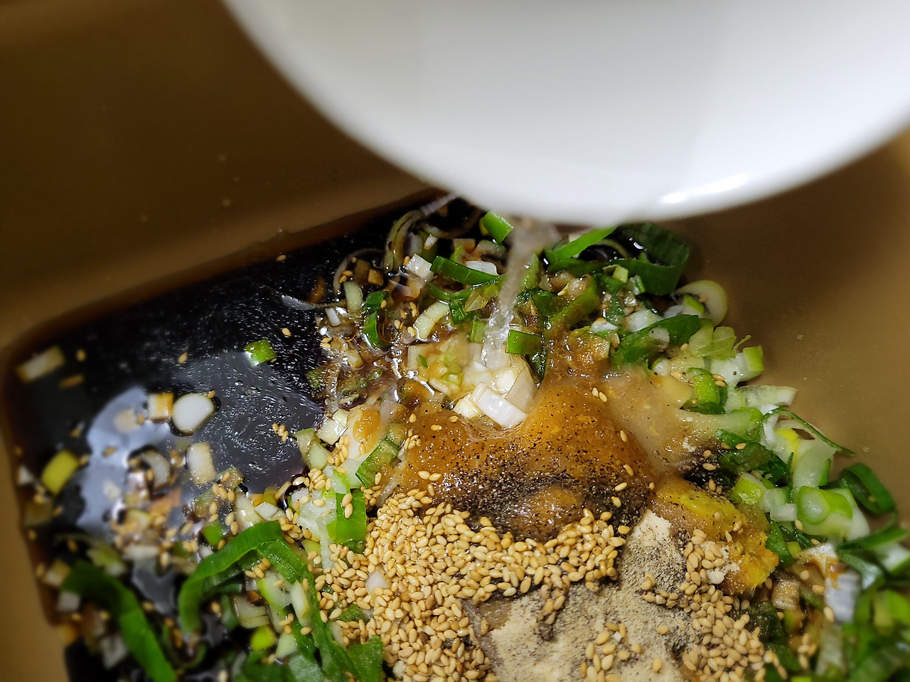7. 여기에 후추, 참기름, 깨소금을 추가합니다.