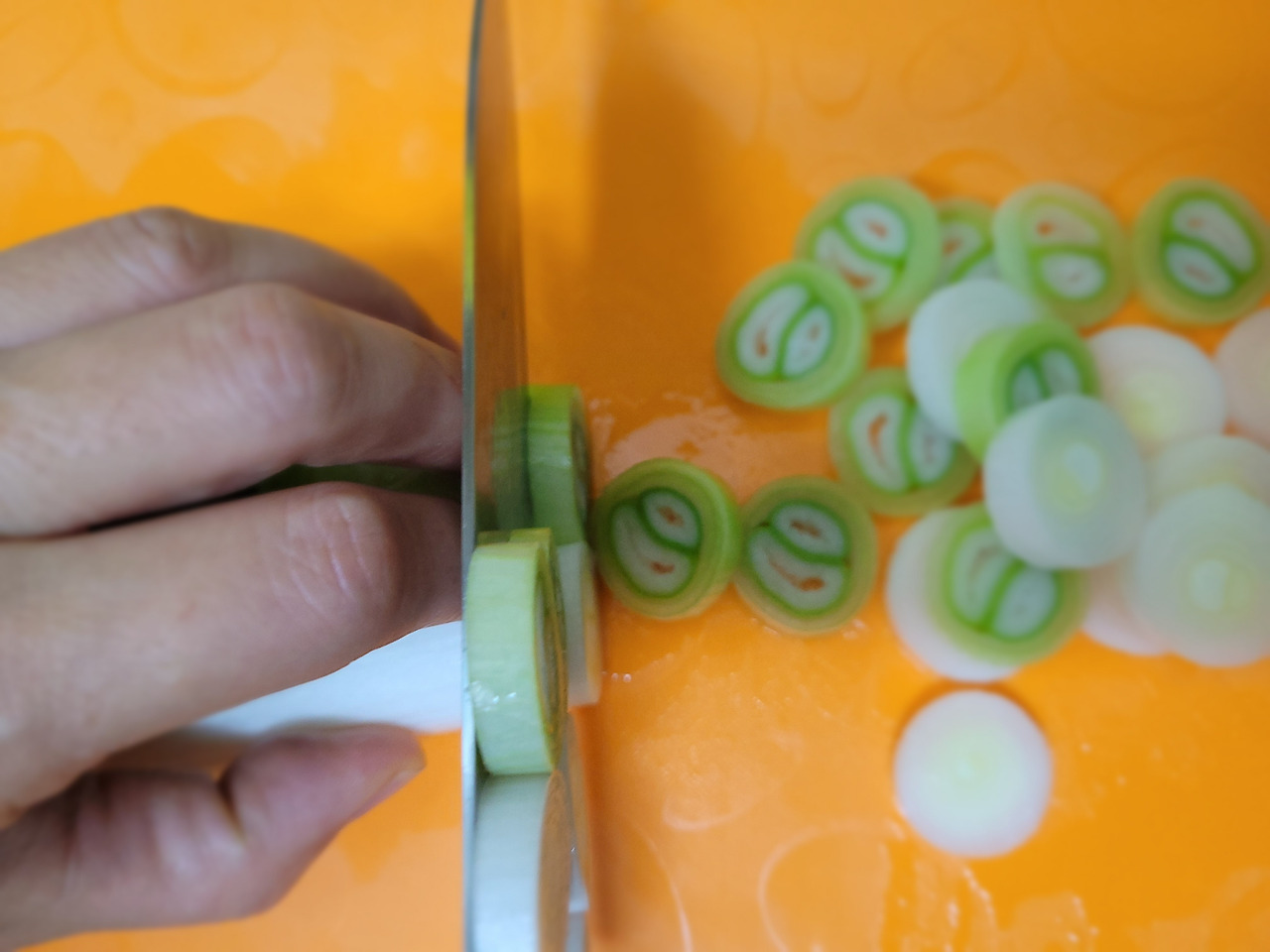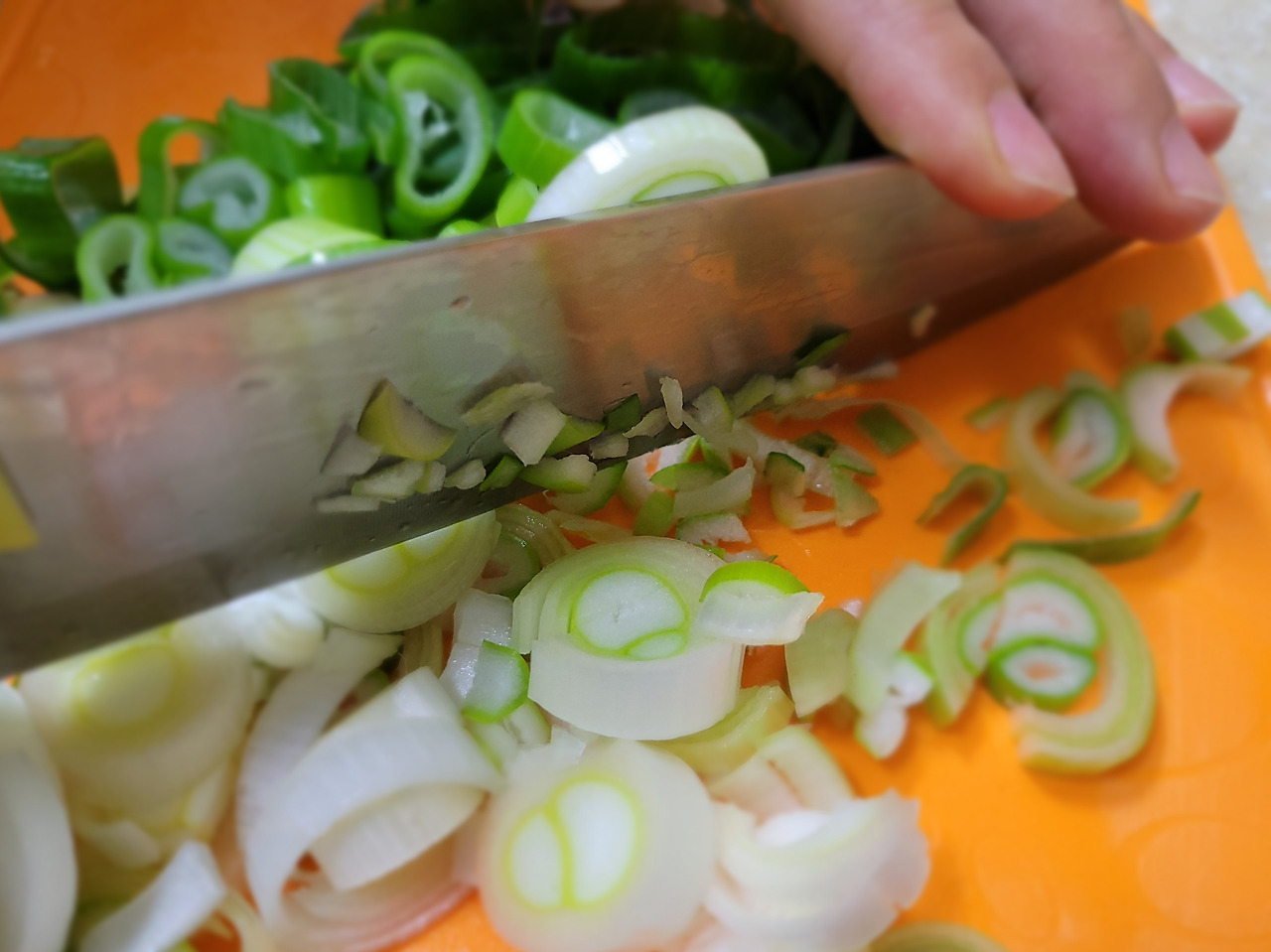 3. 대파를 썰어 듬성듬성 다져줍니다.