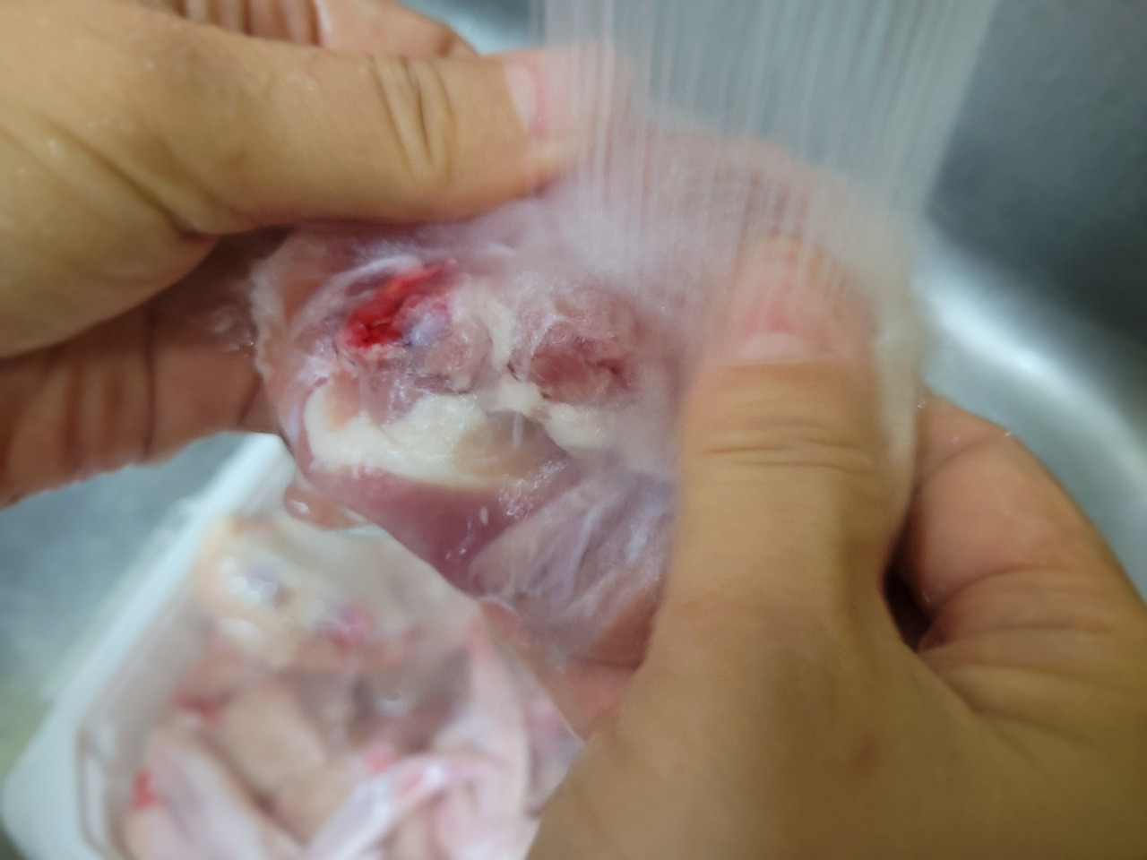19. 닭고기가 다 익었으면 닭다리의 껍질이 벗겨져 올라가 뼈가 드러나요.