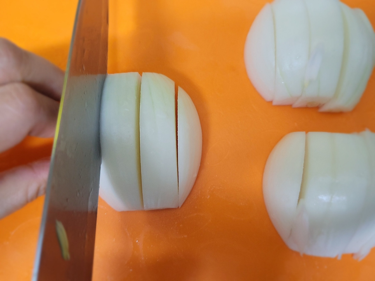 11. 양파를 반으로 잘라 1cm 크기로 썰어줍니다.