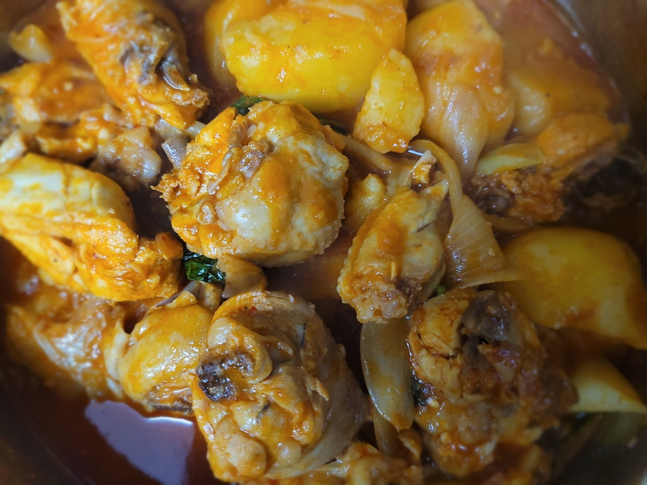 쫄여진 양념 국물에 찍어 먹는 닭볶음탕