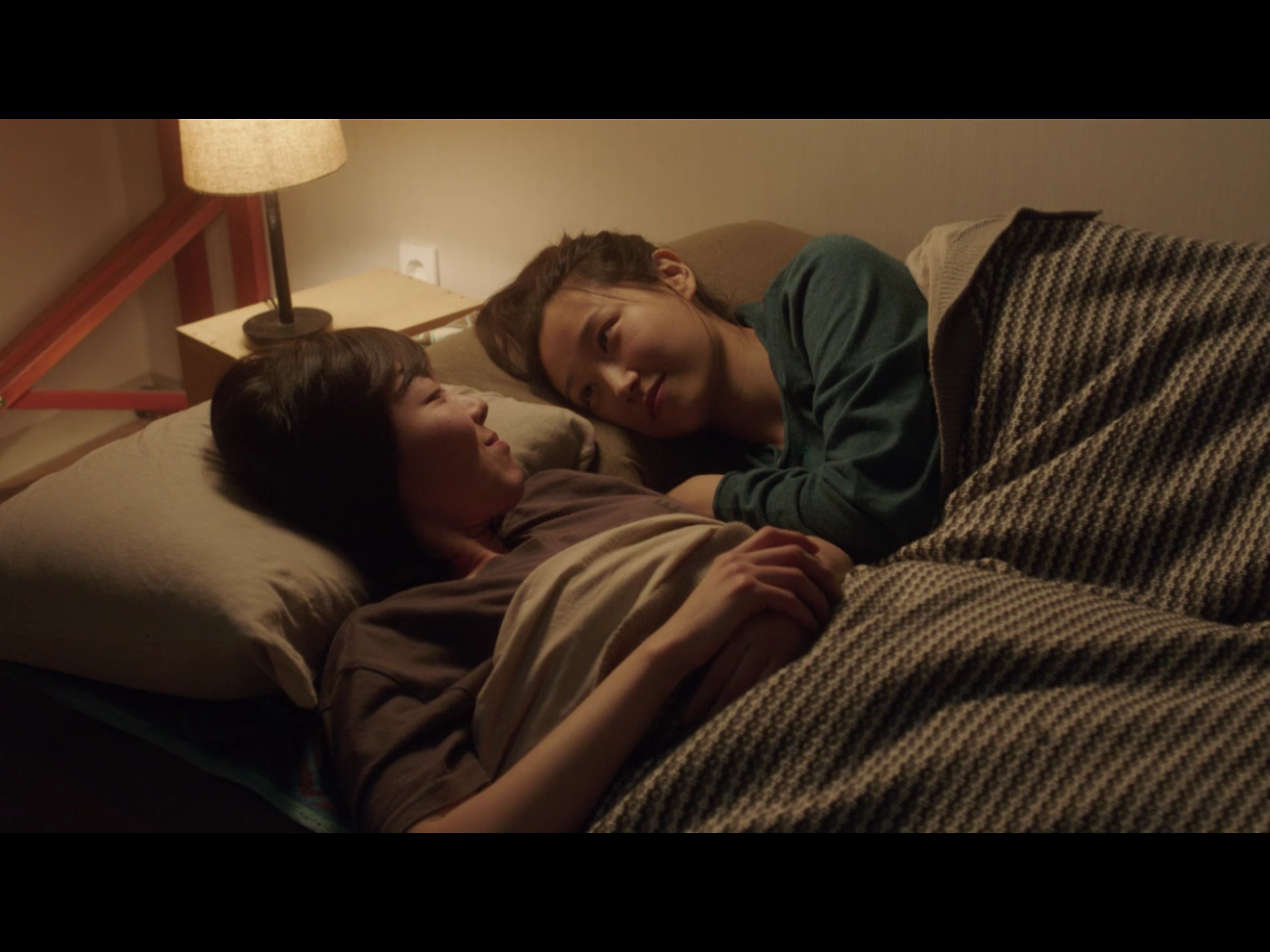 모든 연애는 시소같다. 서로 똑같이 사랑하면 모든 갈등은 생기지 않았을 텐데, 항상 누군가가 더 사랑하고 더 아파한다. 영화 초반은 지수가 윤주에게 다가가는 내용으로 구성되어 있다. 당찬 지수의 적극적인 태도에 언뜻 보면 윤주를 끌려가는 것처럼 보인다. 소심해보이기도 하고. 강렬한 어조가 아닌 나긋한 목소리로 자신이 하고 싶은 말을 그저 조곤조곤 말 할 뿐이다. 졸업작품때문에 힘든 일이 있어도 애인에게 투정부리지 않는다. 하지만 표현 욕구가 아예 없는 사람은 아니다. 가슴 속에 품었다가 지수에게 건낸 선물이 그녀의 내향적인 마음을 보여주는 장면은 어쩌면 윤주의 캐릭터를 잘 표현한 장면이 아닐까 생각한다.
