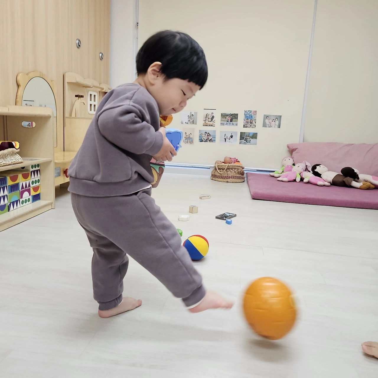 "엄마가 회사 끝나고 맛있는 거 사서 갈게. 친구들이랑 선생님이랑 재밌게 놀고 있어"
