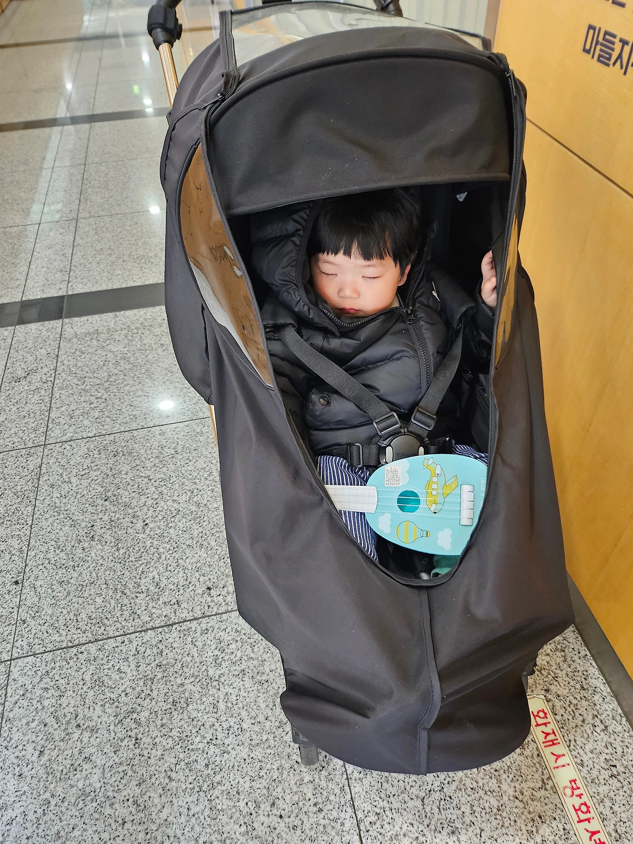 주말이다. 아기와 온전히 함께하는 시간이자 체력을 소진해야 하는, 즐거운데 힘이 들고 진이 빠지지만 행복한 아이러니한 시간이다. 어린이집 이 년 차. 말도 부쩍 늘고 이런저런 놀이에 재미를 느끼면서 주말이 되면 노는 것을 즐긴다. 아기의 웃는 모습을 보면 마냥 놀아주고 싶지만 무제한적인 놀이는 점점 체력을 고갈시킨다. 일곱 시 전후만 되면 눈을 떠서 밤 아홉 시까지 쉴 새 없이 떠드는 아기. 말이 없는 것보다는 나은데 말이 많아도 너무 많다. 서서히 떨어지는 체력 배터리에서 필요한 건 낮잠 타임. 요새는 이 낮잠마저 거부한다. 나는 놀 거야. 한 시에는 취침한다는 어린이집 생활에 맞춰 누워도 빠딱빠딱 일어나서 집 안을 활보한다. 이번에도 한참을 놀았다. 도저히 잘 기미가 없어 최후의 수단 유모차를 태우고 집을 나섰다. 얼마 가지 않아 곧 곯아떨어지는 아기. 이럴 거면서 왜 잠을 이기려 드는지.