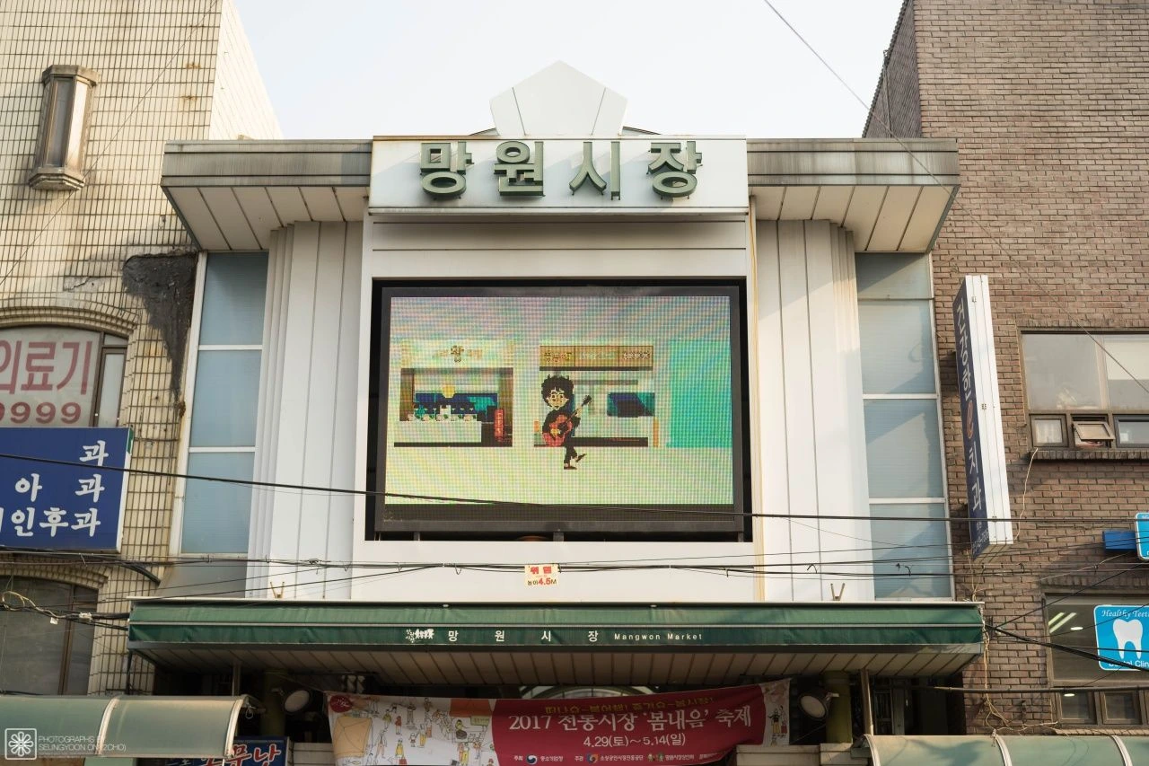 예를 들면, 내가 생각하는 관점에서 정말 힙스럽다고 생각하는 곳은 요즘 뜨고 있는 망원동이 아닐까 생각한다. 여느 곳과 별반 다르지 않게, 한 집 건너 한 집이 카페인 동네지만, 그래도 이곳이 무늬만 힙스러운 곳이 아니라고 생각하는 배경에는, 망원시장을 중심으로 한 옛 모습들이 파괴되지 않을 채로 요즘 것들과 함께 묘한 공존을 이루고 있다는 점이다. 오밀조밀한 주택가들 사이에 대기업이 파고 들어와 홀로 우뚝 선 빌딩(롯데월드타워처럼)을 지을 만도 한데, 적어도 아직까지는 그러한 조짐은 보이지 않는 것 같다. 망원동의 또 한 가지 정말 재밌는 점은 경쟁업체들끼리의 협업이다. 경쟁에 익숙한 우리는 옆에 똑같은 가게를 차려놓고 서로의 밥그릇을 빼앗기만 급급하지만, 이곳에서는 다양한 카페들과 일러스트레이터들이 한데 모여 시장을 열거나, 각자가 서로 소소하게 교류를 하는 모습을 어렵지 않게 볼 수 있다. 이렇듯 동네 상권을 위한 창조적인 행위가 지속되고 있다는 점이다.