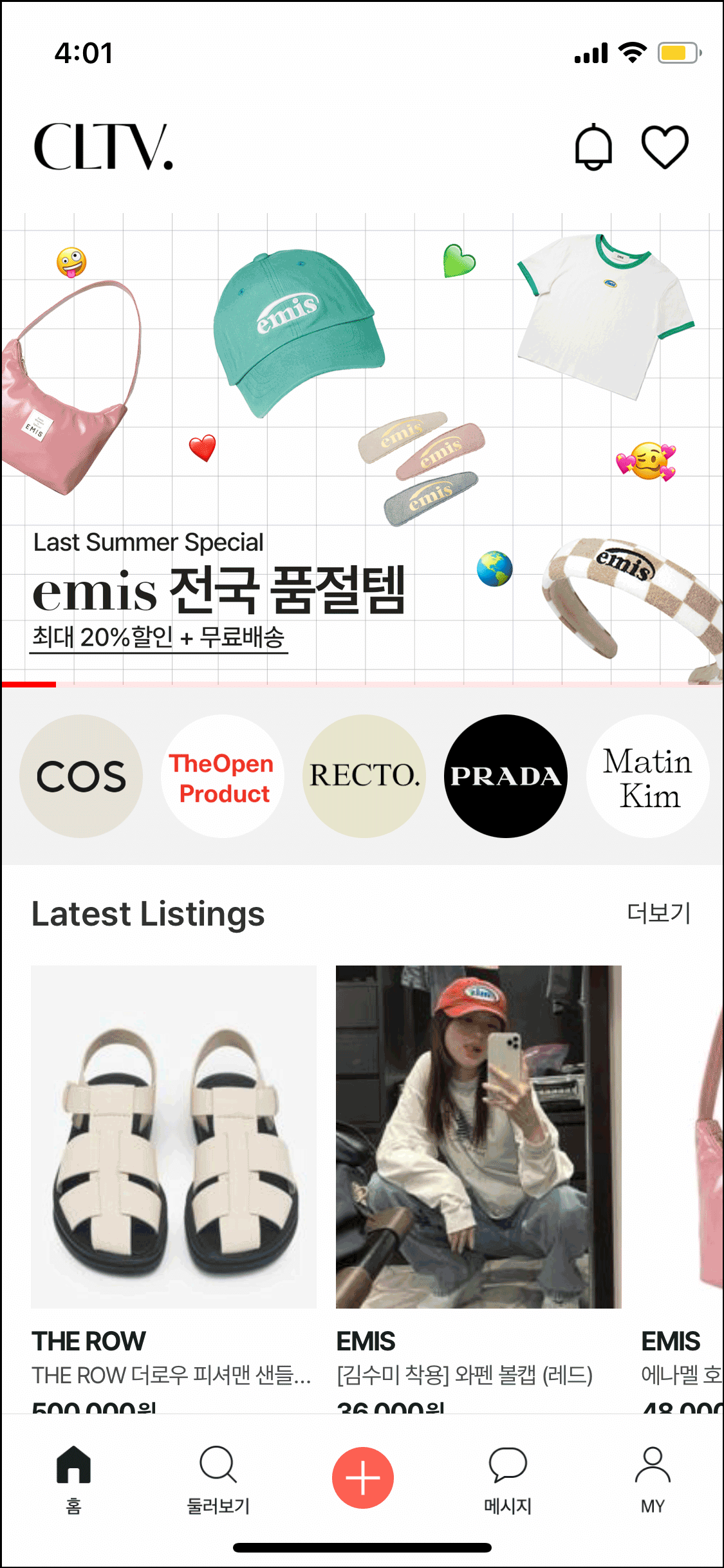 홈 화면에서 눈에 띈 건 인기 브랜드를 모아둔 탭인데 앱 내에서 판매 중인 브랜드를 쉽게 파악할 수 있고 누르면 브랜드 팔로우 페이지로 연결된다.