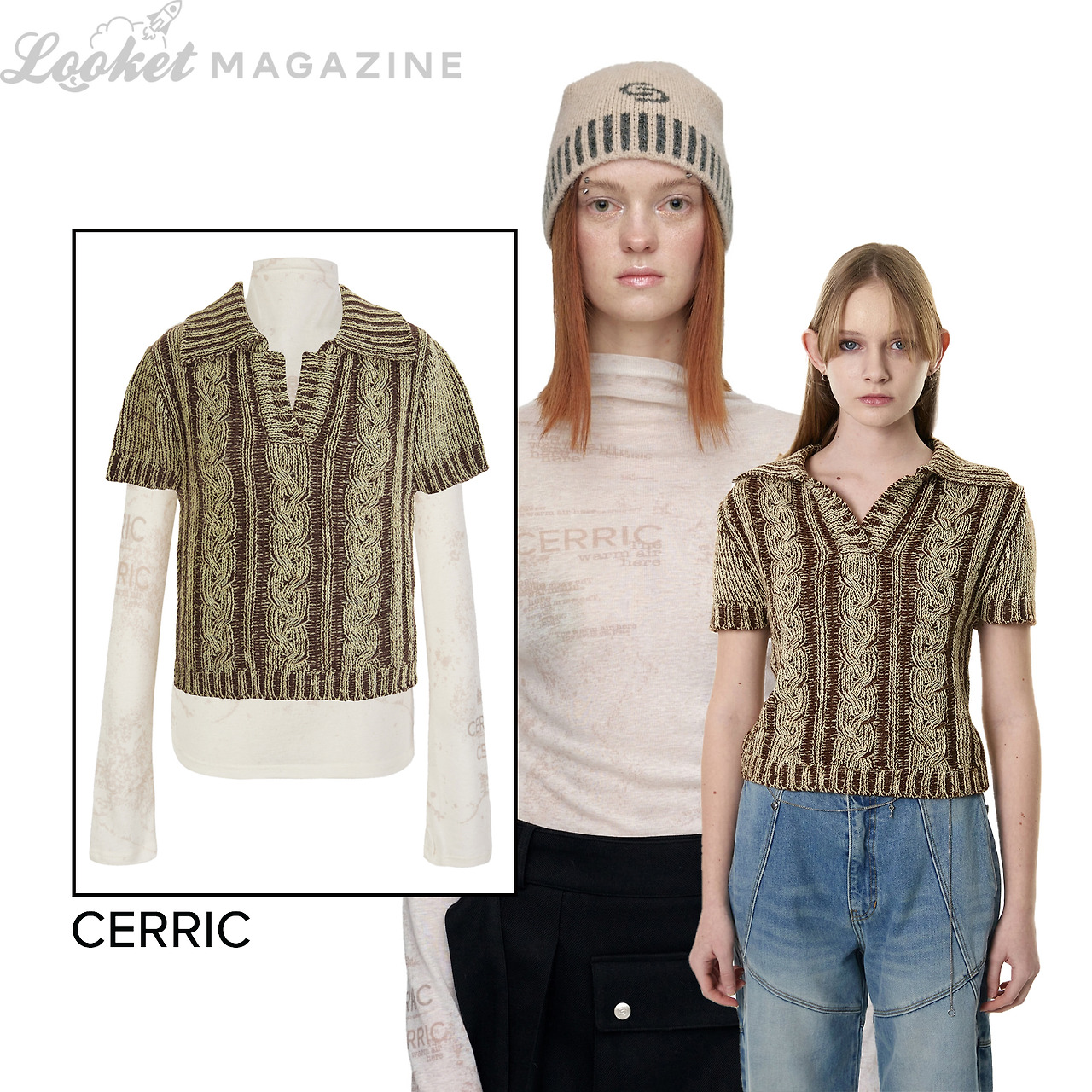여름에 산 썸머 니트, 정작 더울 때 통풍이 안된다는 이유로 몇 번 못 입었다면 폴라티와 레이어드 해서 아쉬움을 달래 보자. 니트의 꼬임과 폴라티의 레터링 프린트가 지루할 틈이 없는 조합이다. 원래 예쁜 것+예쁜 것은=두 배로 예쁜 법.