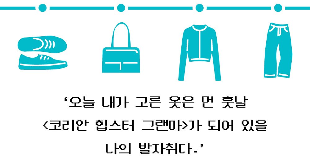 이 바람의 유효기간은 아마 평생일 것 같다. 그래서 최종 목표는 꼭 멋쟁이 할머니 타이틀을 다는 것. 이왕이면 글로벌하게 <코리안 힙스터 그랜마>라고나 할까.