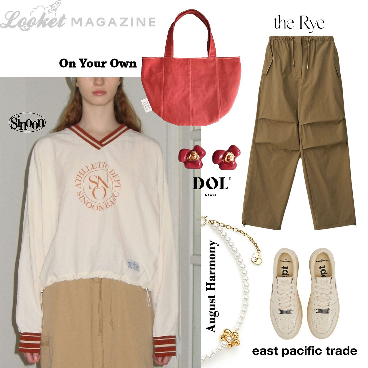 브이넥 아노락 핀턱 팬츠 레더 스니커즈레드 스티치 백 목걸이 귀걸이