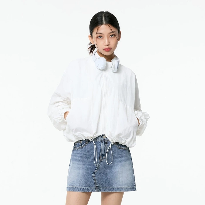2. 밀리언코르 기본에 충실한 디자인의 담백한 크롭 윈드 브레이커. 얇고 가벼운 소재와 화이트 컬러로 일상에서 활용도가 높은 아이템.