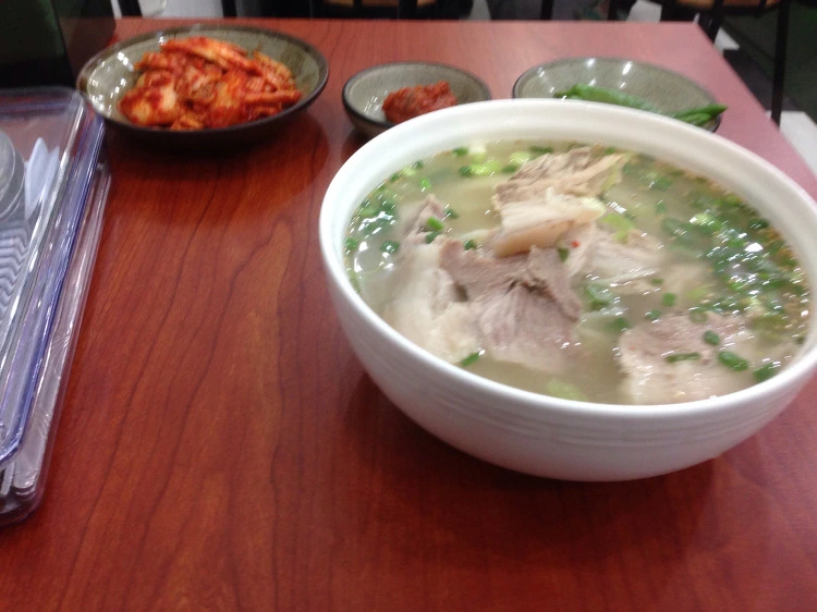 일찍 와서 기다린 보람이 있어서 9시 반에 오픈하자마자 내 국수가 가장 먼저 나온다. 먼저 국물을 한 숟가락 떠먹는다. 그래 이 맛이지. 천제연 폭포 앞에서 먹었던 거와는 완전 다르다. 맛에 심취해서 정신없이 먹는다. 국물이 진하고 고기도 꽤나 있어서 다 먹으니 배가 상당히 부르다. 그래도 국물까지 싹 비운다.