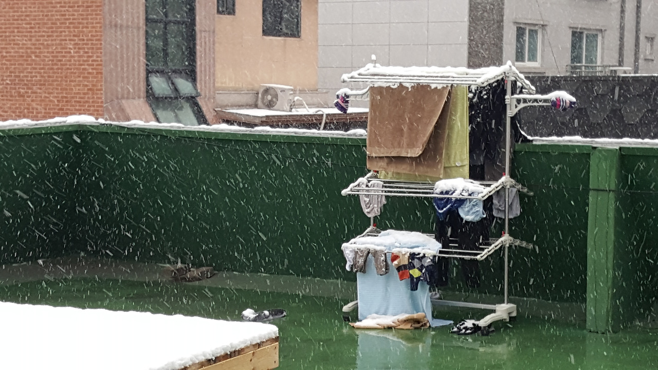 오랜만에 날씨가 좋기에 빨래를 마당에 널었다.