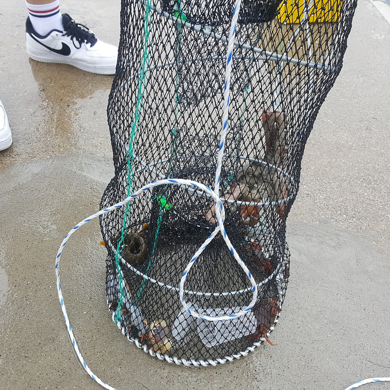 뚝방쪽에다 던져놓은 통발로 가서 작은 경훈이가 슬쩍 들어본다. 뭐가 많이 있어 보인다. 설마 잡혔나? 가까이 가서 보니 꽤나 많은 무엇인가가가 보인다. 일단 문어 한마리가 보이고 또 다른 정체를 알 수 없는 것들도 여럿 들어가 있다. 통발 이거 생각보다 짭짤한데? 얘네 내일 간다고 했으니 통발 넘겨 받을까 싶다. 그런데 지금 날씨 봐서는 너희 나갈 수 있을까?