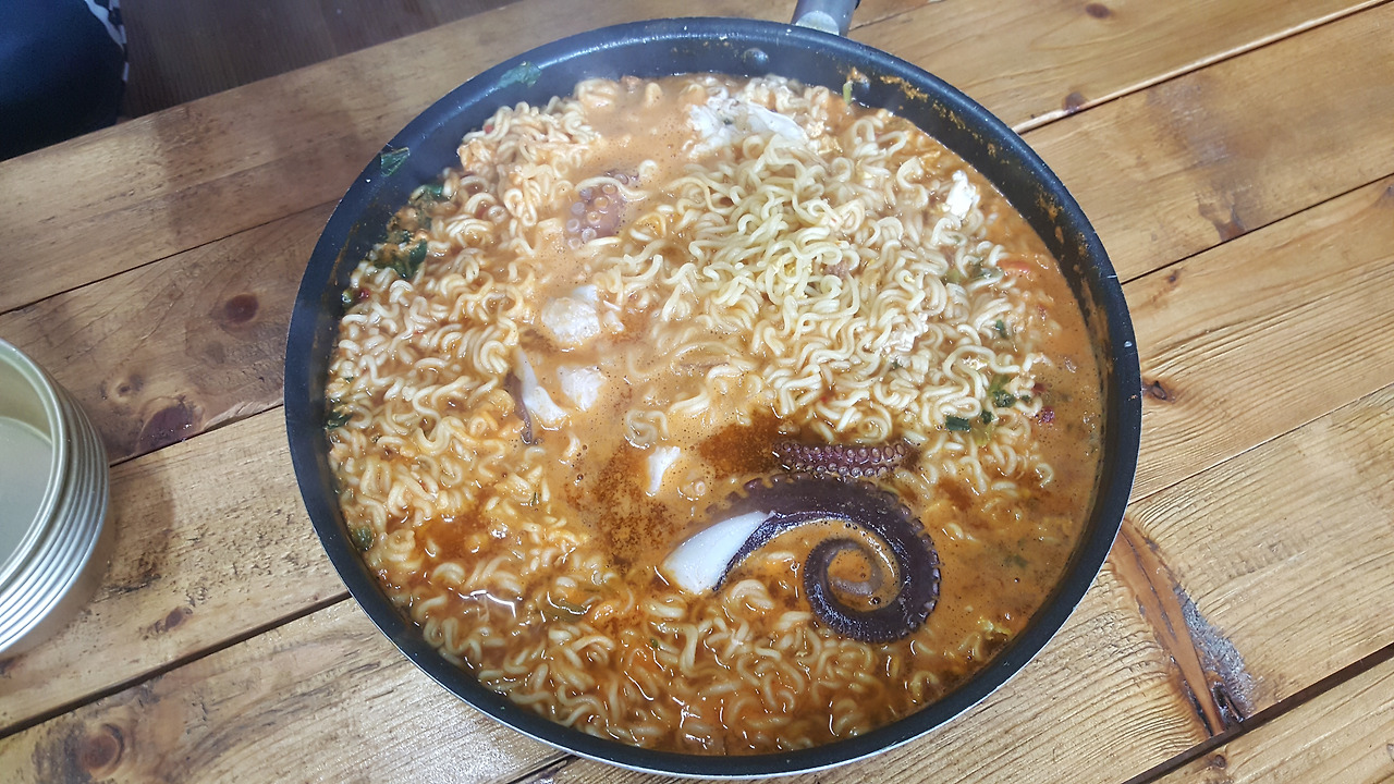문어를 재료로 만든 호화로운 라면으로 일단 모두 같이 해장을 한다. 어제 내장에게 끼얹은 피로가 과연 이걸로 풀리겠냐만은 일단은 맛있어서 좋다. 문어라는게 이렇게 쉽게 구할 수 있는 거였다니. 삼시세끼는 설마 조작이었던걸까.