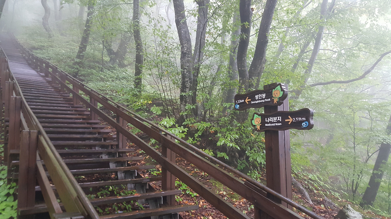 빗방울이 갈수록 굵어진다. 괜찮을까? 표지판을 보니 이제 1.3키로 정도 남았다. 평소라면 고민할 필요도 없는 거리인데 비가 거세지고 시간도 늦어지니 강행하는게 맞는지 판단이 잘 안선다. 올라오면서 만난 사람이 단 한명도 없다는 것도 한몫한다.