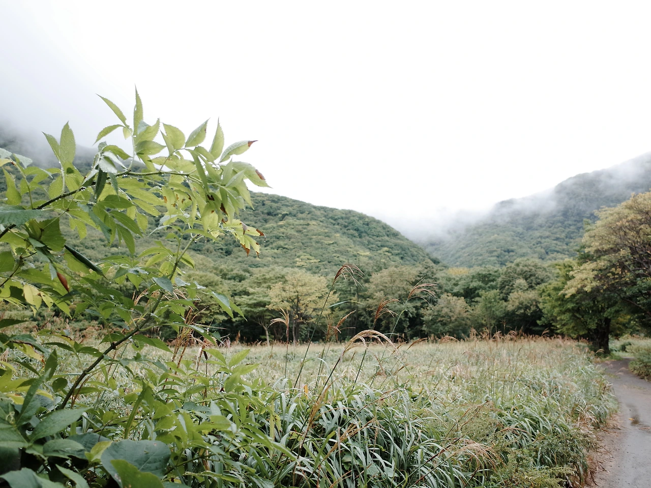 그렇게 도착한 나리분지는… 이걸 왜 분지라고 부르는걸까? 그냥 식당 하나 달랑 있고 주변에는 밭이 좀 보일 뿐이다. 게다가 갑자기 비도 쏟아진다. 이 뒤로 트래킹 코스가 있다는거 같던데 일단은 비가 그칠때까지 밥이나 먹으면서 기다려야겠다.