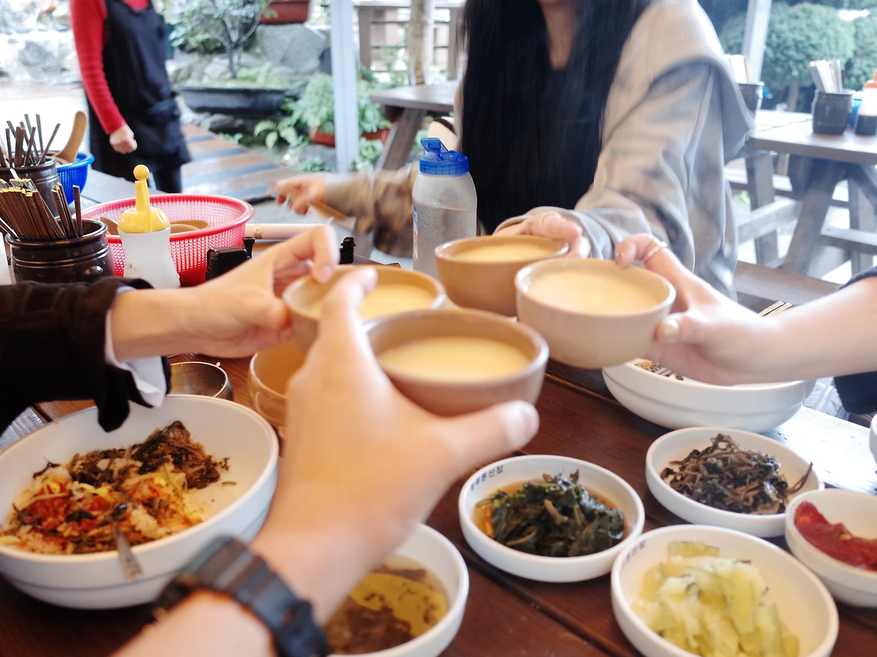작은 경훈이네 일행은 다른 일정이 이어지는지 이 비속에서도 어딘가로 향한다. 아 부지런한 아이들이다. 나는 구미 처자들과 식당에 앉아서 나물 비빔밥을 시킨다. 왜인지 이해는 안되지만 울릉도에서는 의외로 나물이 유명하다. 그리고 생각보다 나물들이 맛있다. 이 처자들은 어제 그렇게 달리고도 부족했는지 결국 씨앗동동주도 하나 시키고 나도 한잔 얻어 마신다. 아 하지만 오늘은 아직까지는 술이 전혀 안 땡긴다. 물론 저녁 되면 달라지겠지…?