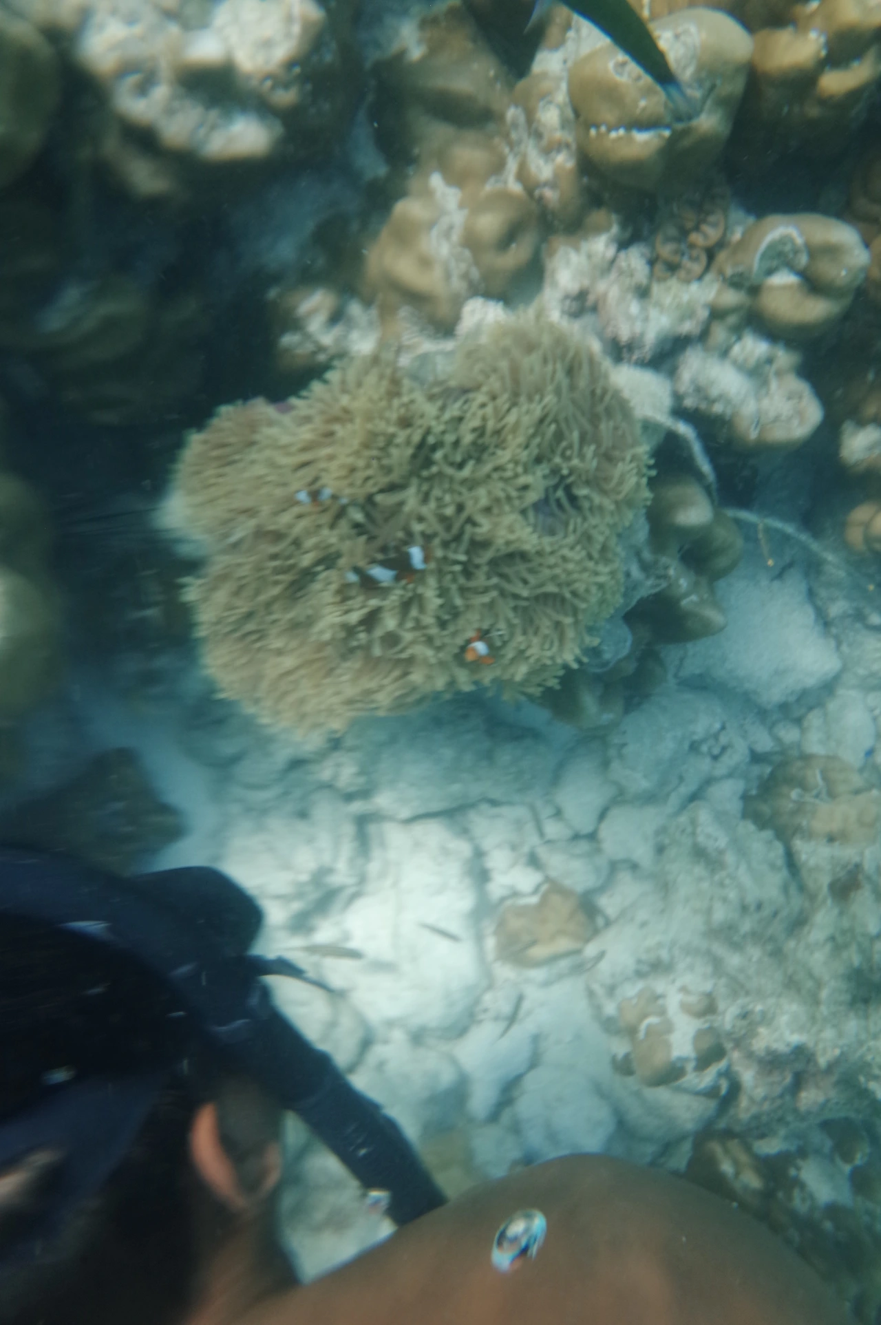 아저씨를 따라 돌아다녀보니 여기가 바로 스노클링의 보물 같은 곳이다. 산호초를 따라 온갖 어종들이 보인다. 정말 자그마한 애들도 있고, 해마, 커다란 놈, 이름을 알 수 없는 희한하게 생긴 놈, 색깔이 알록달록한 놈, 여하튼 별의 별 애들이 다 있다. 생각해보니 처음에 수영하러 들어왔을 때 수영에 방해된다고 투덜거렸던 그 돌멩이들이 다 산호초였나 보다. 이 귀욤이들의 집을 가지고 내가 뭐라고 투덜거렸구나. 미안하다. 근데 너네는 썰물 되면 다 어디로 가는 거니?