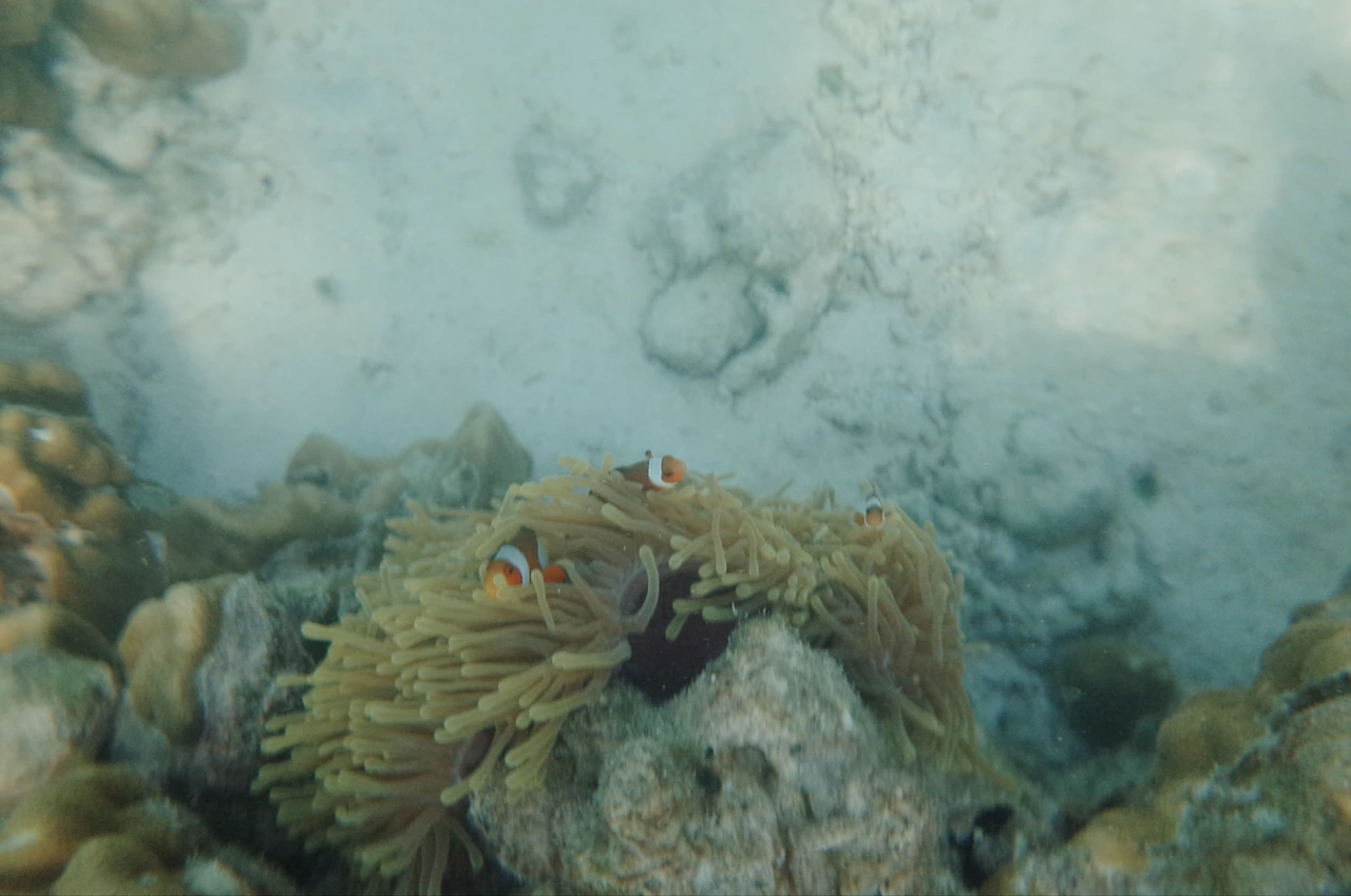 조금 가니 산호초 같은 게 나온다. 아 여기 이런 게 있었나? 아저씨가 가는 곳으로 따라가서 가리키는 곳을 바라보니 니모 가족이 옹기종기 모여있다. 아 '네모'가 아니라 '니모'였구나!