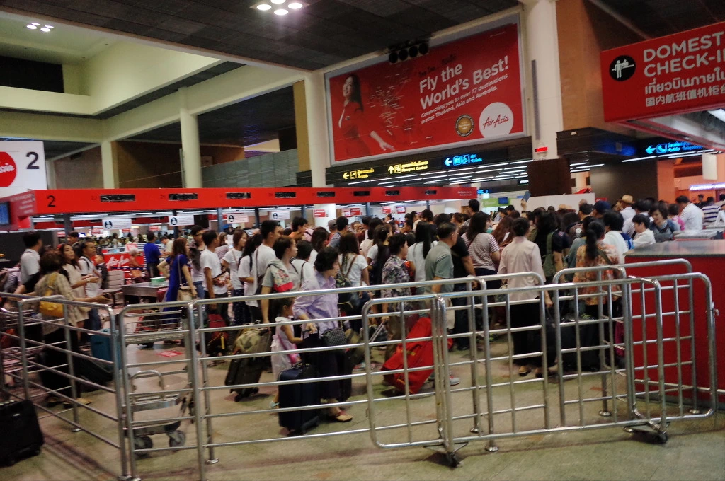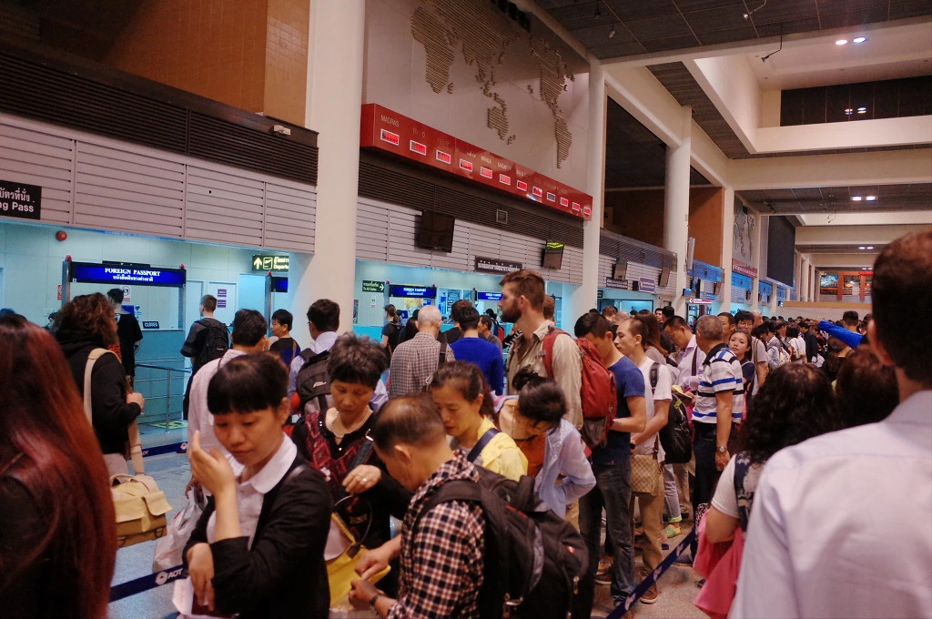 시간이 아주 촉박하지는 않지만 공항에서는 무조건 보딩 게이트 앞까지 간 후에 쉬어야 마음이 편하다. 바로 패스포트 컨트롤로 간다. 여기도 줄이 쫙 서있다. 쑤완나품 공항도 있는데 왜 다 여기 있는 걸까. 돈므앙 공항에서만 입출국을 하는 에어아시아 때문이겠지. 여기서 국제항공편을 운행하는 건 내가 알기로는 에어아시아 뿐이다.