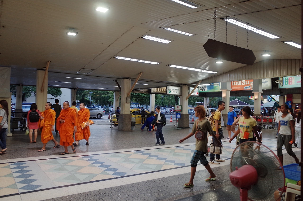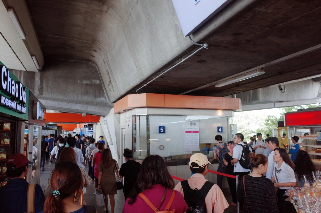 여기 모칫역에서 숙소가 있던 라챠테윗 역까지는 37바트라 잔돈을 바꿔서 자동판매기를 이용해야 했지만 지금 가야하는 시암역은 42바트 표준 요금이라 그냥 창구에서 구매한다. 사람이 꽤나 많아서 보니 9시가 좀 넘었다. 출근시간이다. 내가 봐도 거지몰골인 상태로 또 한번 만원 지하철에 올라탄다.