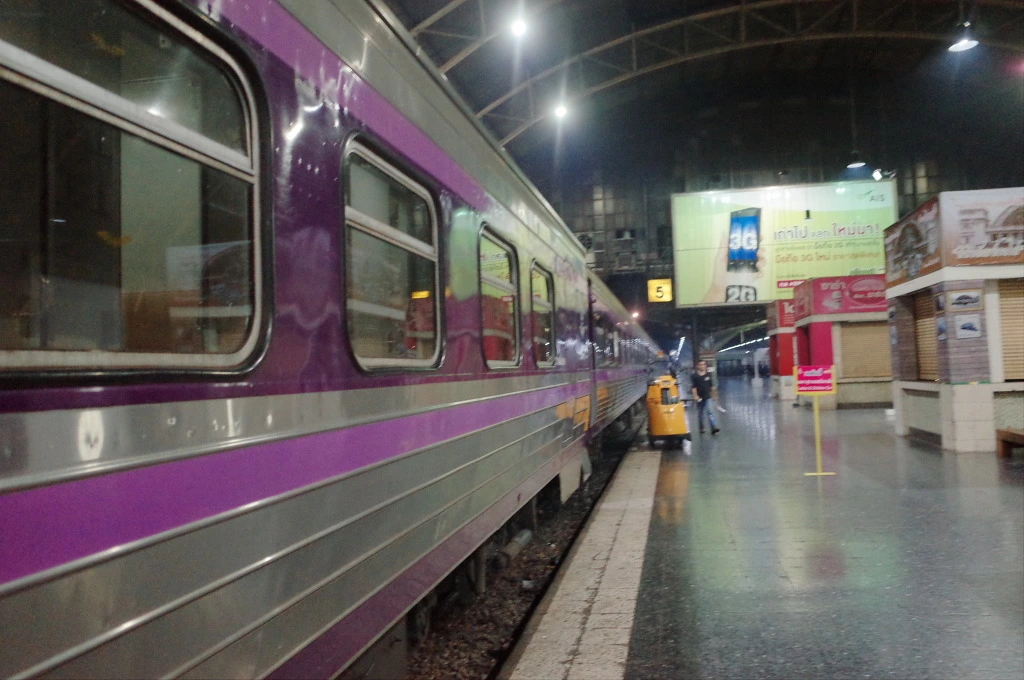 7시 반이 아직 조금 안됐지만 기차로 가본다. 아까 확인할 때는 5번 플랫폼의 선로가 비어있었는데 지금은 내 목적지인 태국 국경 Nong Khai까지 가는 기차라는 안내와 함께 기다란 기차가 서 있다. 지금 바로 탈 수 있는지 경찰에게 슬쩍 물어보니 표를 확인하고 몇번 기차에 타라는 것까지 알려준다. 태국 사람들 그러고 보면 은근히 친절하다.
