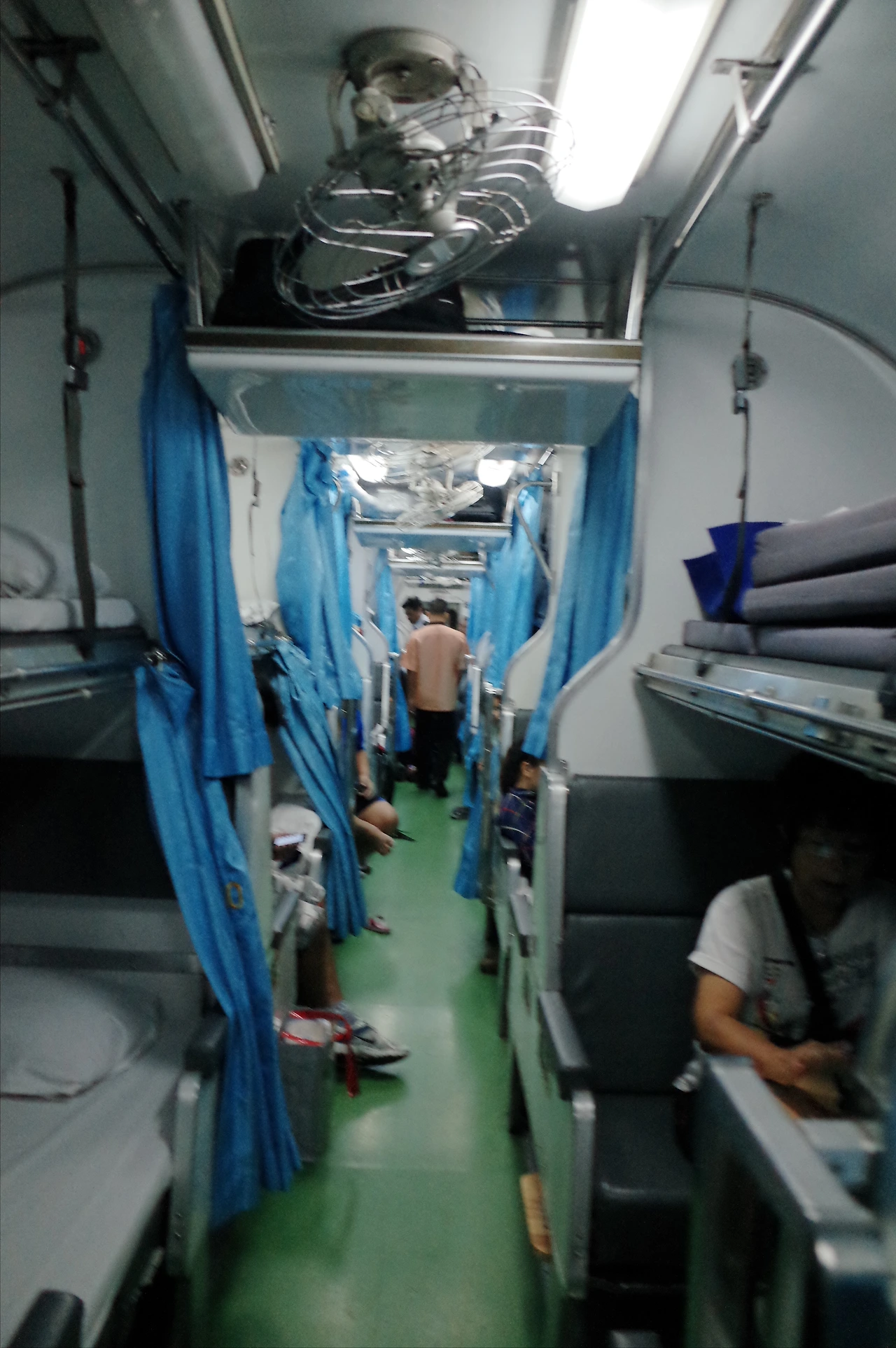 기차에 올랐다니 밑에 자리가 두개가 있고 위에 침대가 하나 있다. 2층 자리가 더 저렴해서 나는 2층으로 샀었다. 근데 그럼 지금부터 올라가 있어야 하는 건가? 위에 짐들이 매트리스 같은 게 가득 있어서 지금 못 올라갈 거 같아서 스태프에게 한번 물어본다. 영어를 잘 못해서 알아듣기 쉽지 않지만 올라가라고 하는 것 같다. 아무리 봐도 아닌 거 같은데. 밑에 의자 두개에 각각 번호가 있는 게 잘때만 올라가는 거라고 혼자 추측해본다. 인도에서 슬리핑 기차를 탈 때도 그러했으니 맞을 거다.