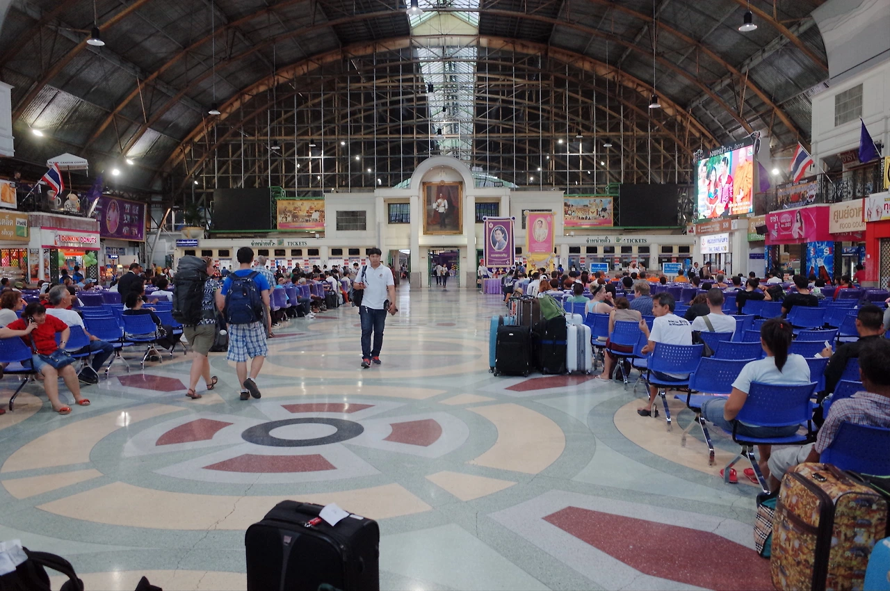내려가니 바로 여행 안내소가 보인다. 친근한 미소를 지으며 접근한다. 내가 아무리 험상 궂게 생겼어도 웃으며 접근하면 대부분이 호의적으로 얘기를 시작한다. 다행히 거기 남자가 영어를 어느 정도 한다. 내가 지금 비행기를 놓치게 되어서 기차를 타야 하는 상황임을 설명한다. 라오스 가는 기차표를 어디서 어떻게 사면 될까,라고 물어보니 인터넷으로 검색을 막 해보더니 알려준다. 이 공항 건너편에 기차역이 있는데 거기서 사면 된단다. 이리 가까운데 있다니, 일이 잘 풀리고 있다. 타는 건 시내로 가서 타야 한다고 하는데 어차피 영화를 보러 가야 하니 잘됐다.