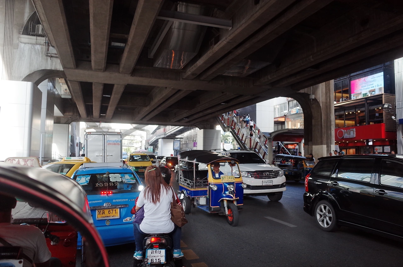 방콕에서는 교통이 혼잡해서 가까운 거리도 꽤나 오래 걸린다. 차도 많이 막히고, 길도 다소 희한하게 구성이 되어 있다. 일방통행이 많은 느낌이다. 4키로 정도 거리지만 30분이 걸려서 도착한다. 요금은 80밧가 조금 안 나와서 내 예상과 어느 정도 맞아 떨어진다.