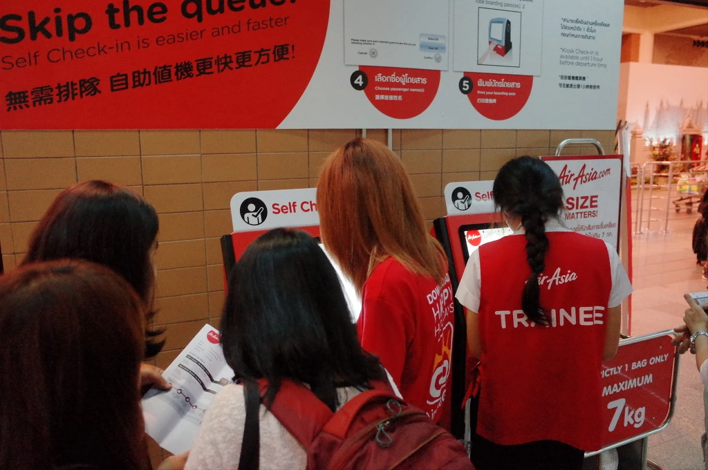 새벽의 공항은 평소와 다르게 매우 분주하다. 이 많은 사람들이 어디를 가는 걸까? 평소 오던 돈므앙 공항의 인파보다 3배는 많은 사람들이 모여있다. 다들 티켓팅을 하고자 줄을 서 있는 모습을 보고 불안해해야 정상이지만 이미 키오스크의 셀프 체크인이 워낙 익숙한 나에게는 큰 걱정이 없다. 바로 키오스크로 직행한다. 이 시간은 사람이 많아서 그런지 키오스크에도 한두 명 줄이 있고 도와주는 스태프도 있다.
